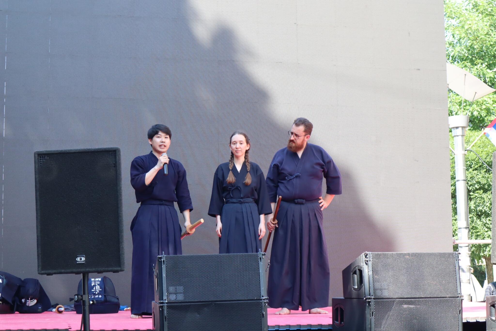 また今回の講演では英語で説明をしながら、セルビア語の通訳を行っていただきました。手伝いに来てくれた竜剣道クラブに感謝したいです。このイベントでは当初、他のクラブチームの子が手伝いを行ってくれる予定でしたが、急遽体調不良により来れなくなってしまいました。その子には後日しっかりかかり稽古をプレゼントしました。