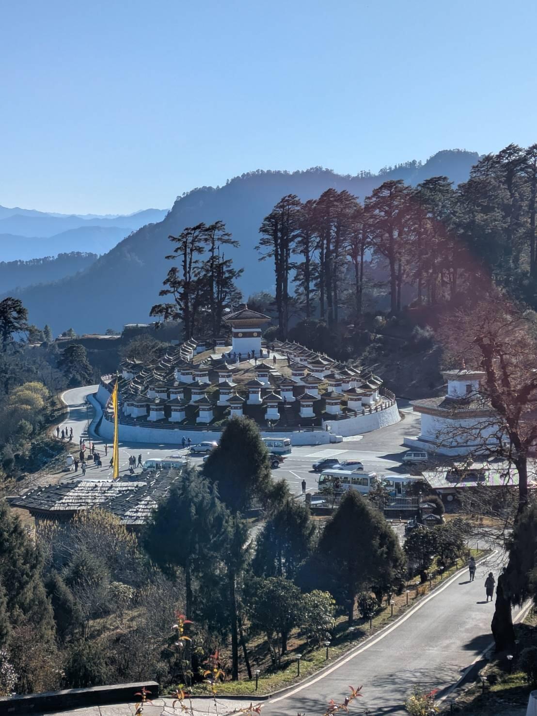 きっとブータンには他にも108に関係することはたくさんあるのですが、私は帰国前にどうしてもやりたいことがありました。それはチョルテン(仏塔)を108周歩くことです。というわけで出国前日の1月28日にティンプーにあるメモリアルチョルテンを108周歩いてきました。本記事のサムネ写真がメモリアルチョルテンです。