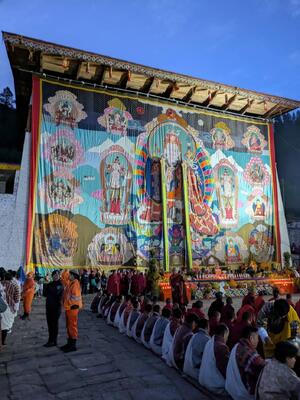 ツェチュ最終日、この日はトンドルという巨大な仏画の御開帳の日となっています。朝3時に起きてそれから予約していたタクシーで朝4時過ぎにパロゾンに到着しました。1時間ほど並び、無事にトンドルを拝むことができました。![]()