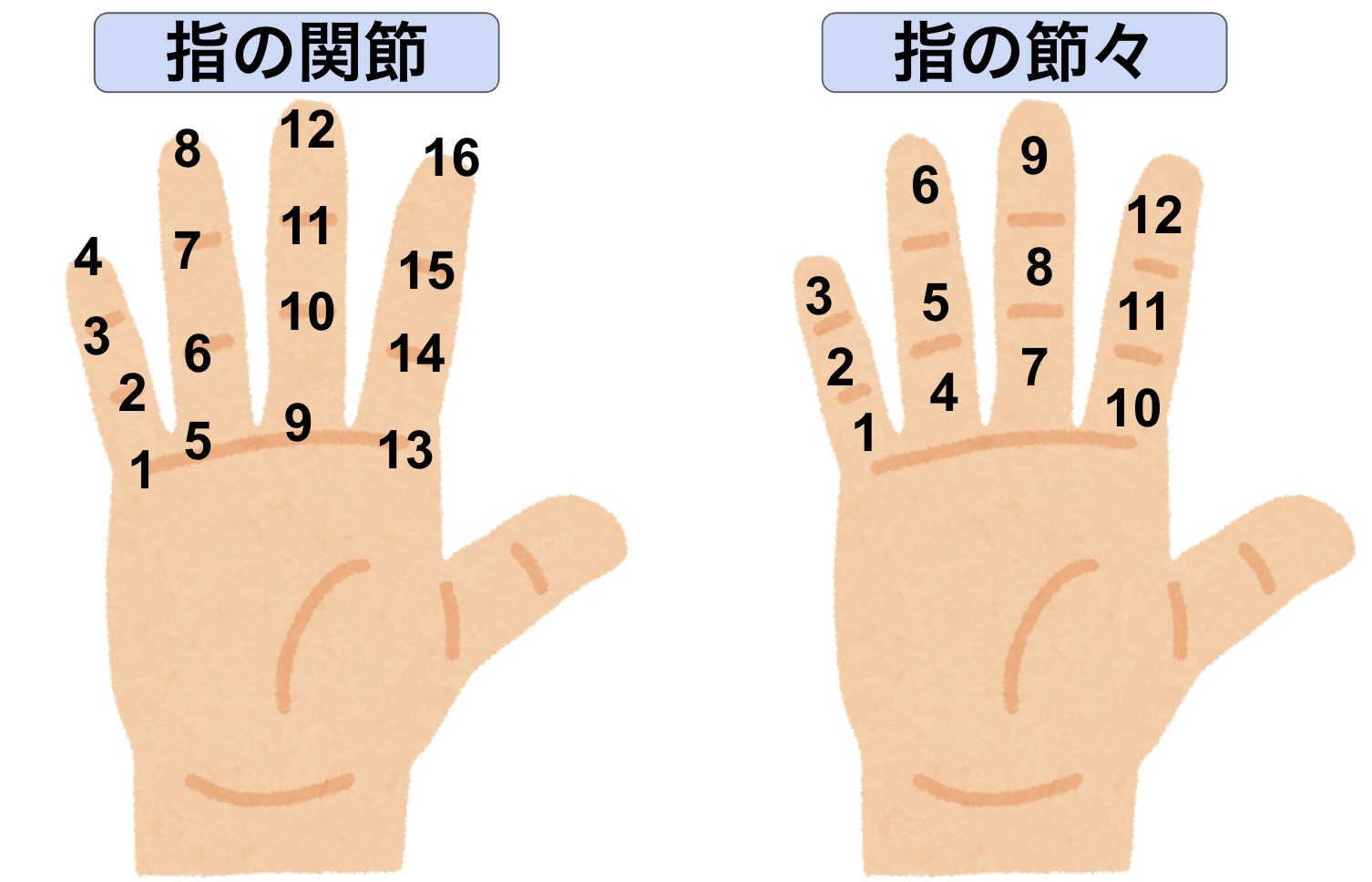 ブータン人によっても関節で数える派と節々で数える派で分かれます。