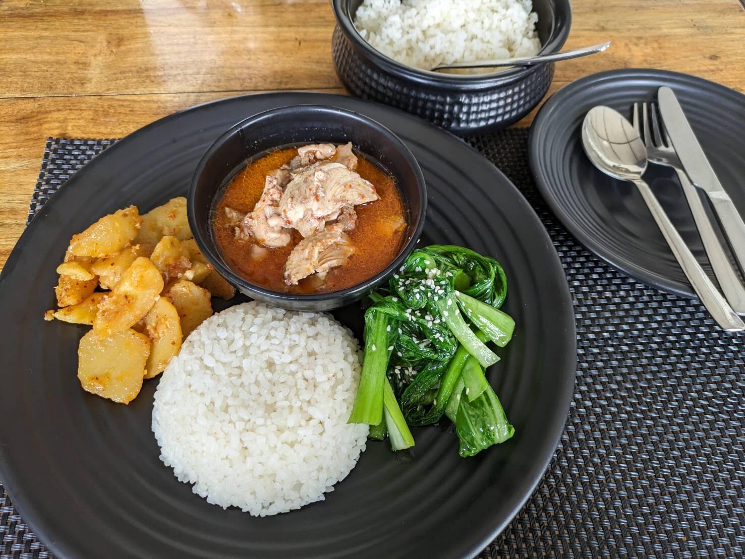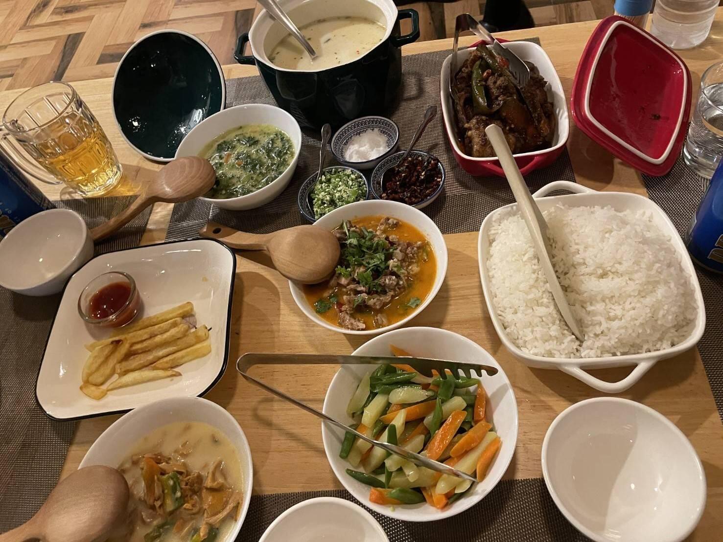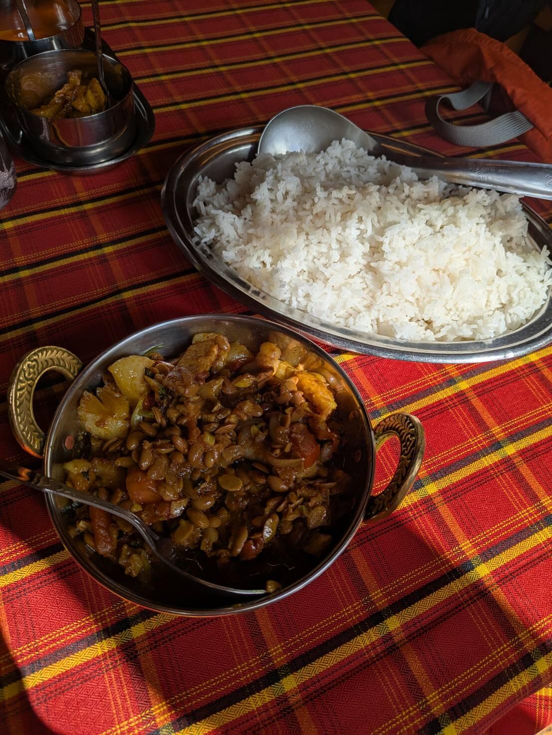 骨無しチキンチリがおすすめです。ブータンでは基本的に鶏肉料理は骨付きで、油断しているとガリっと噛んでしまうので骨無し料理はありがたいです。ブータン納豆のキネマ(写真)も外せません。![]()