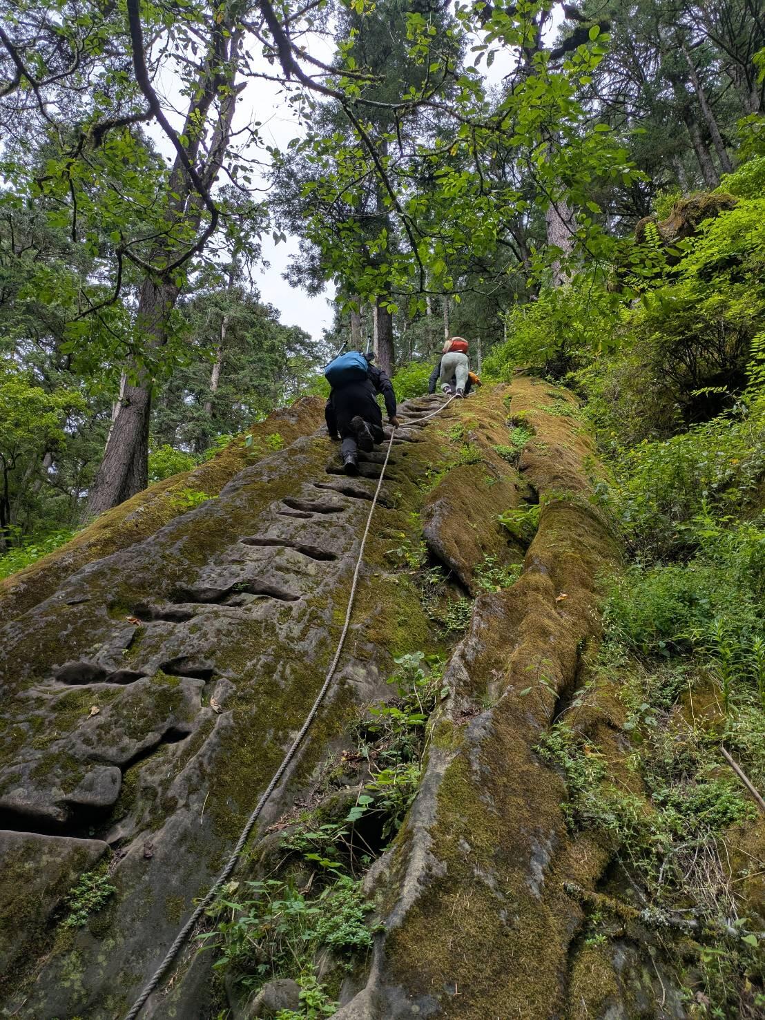 コメント: ロープを伝いながら岩肌を登る箇所はスリル満点です。![]()