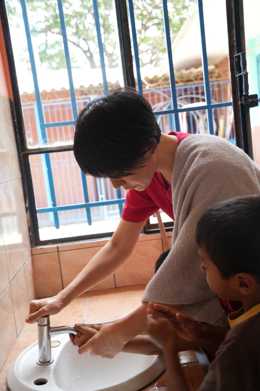 サンタクルス市内の孤児院の保健室で看護師隊員として活動していました。