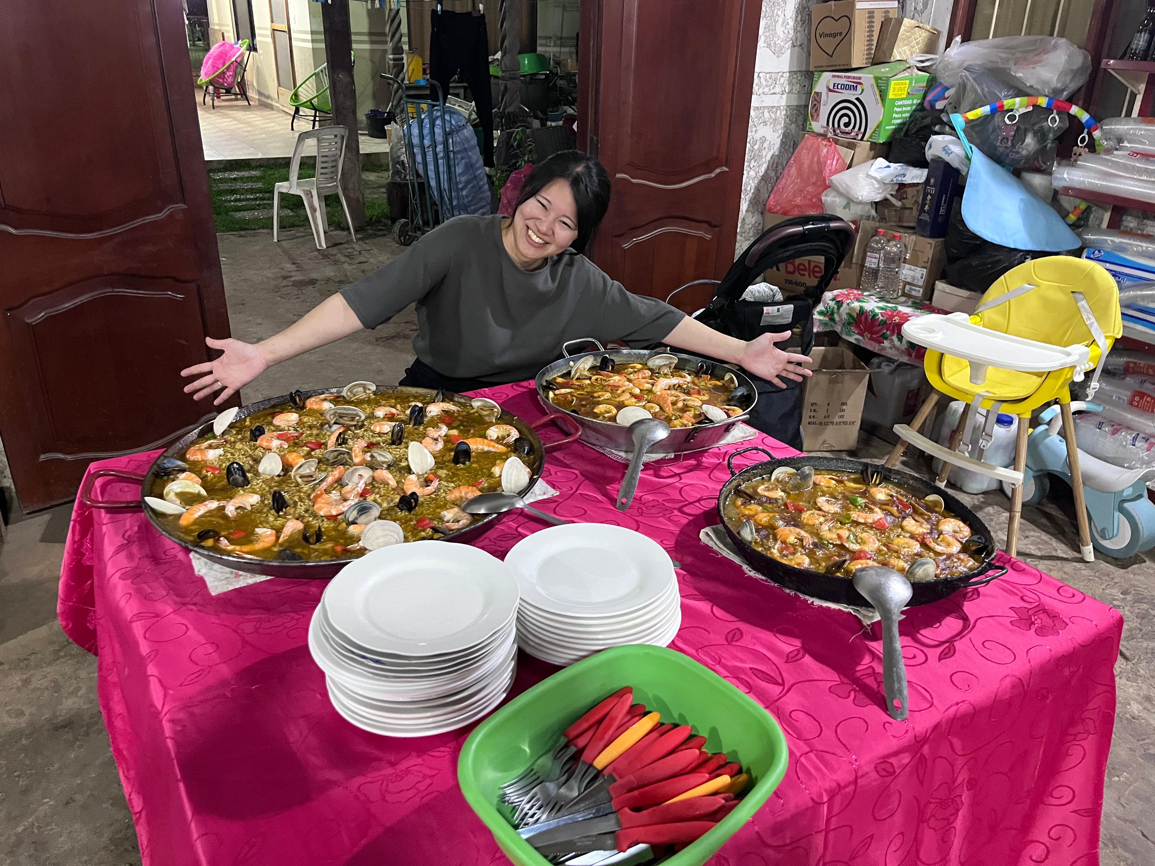 よくご飯を食べに行くお店の店主さんがこの日のためにパエリアを作ってくださいました。ボリビアではなかなか食べることができない魚介類がたくさん入っていて本当に美味しかったです。