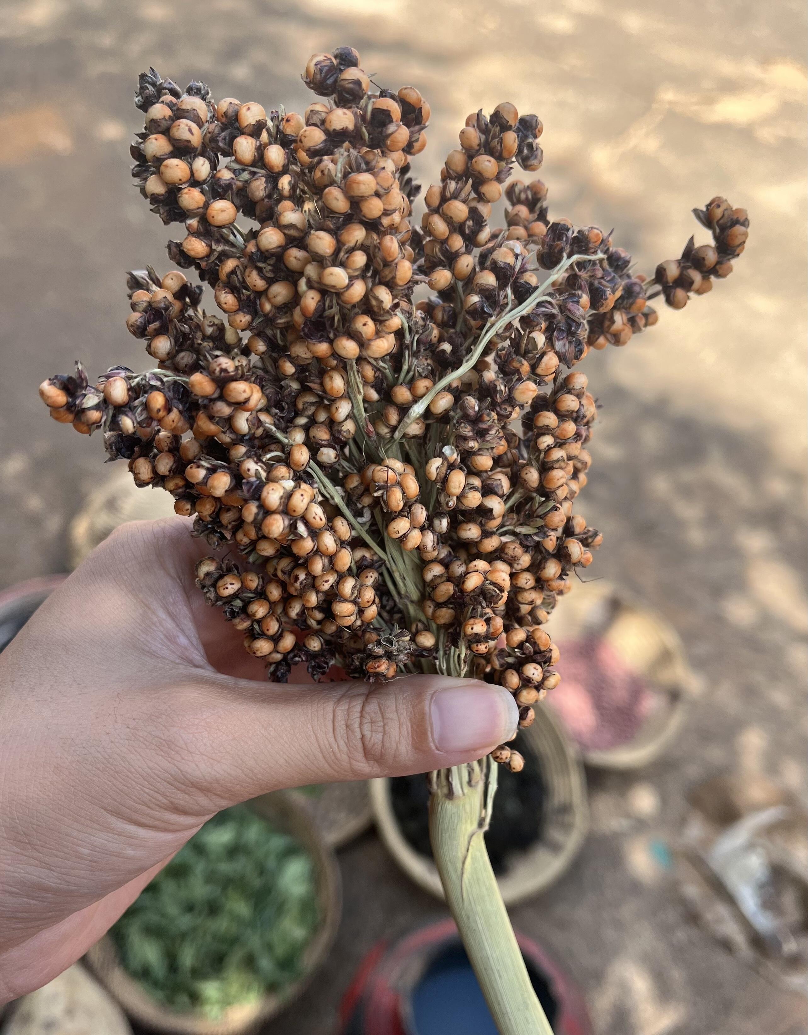 ソルガムの実から茶色い殻を取り除いた食材です。干ばつに強い穀物であるソルガムはこの地域の主食のひとつです。