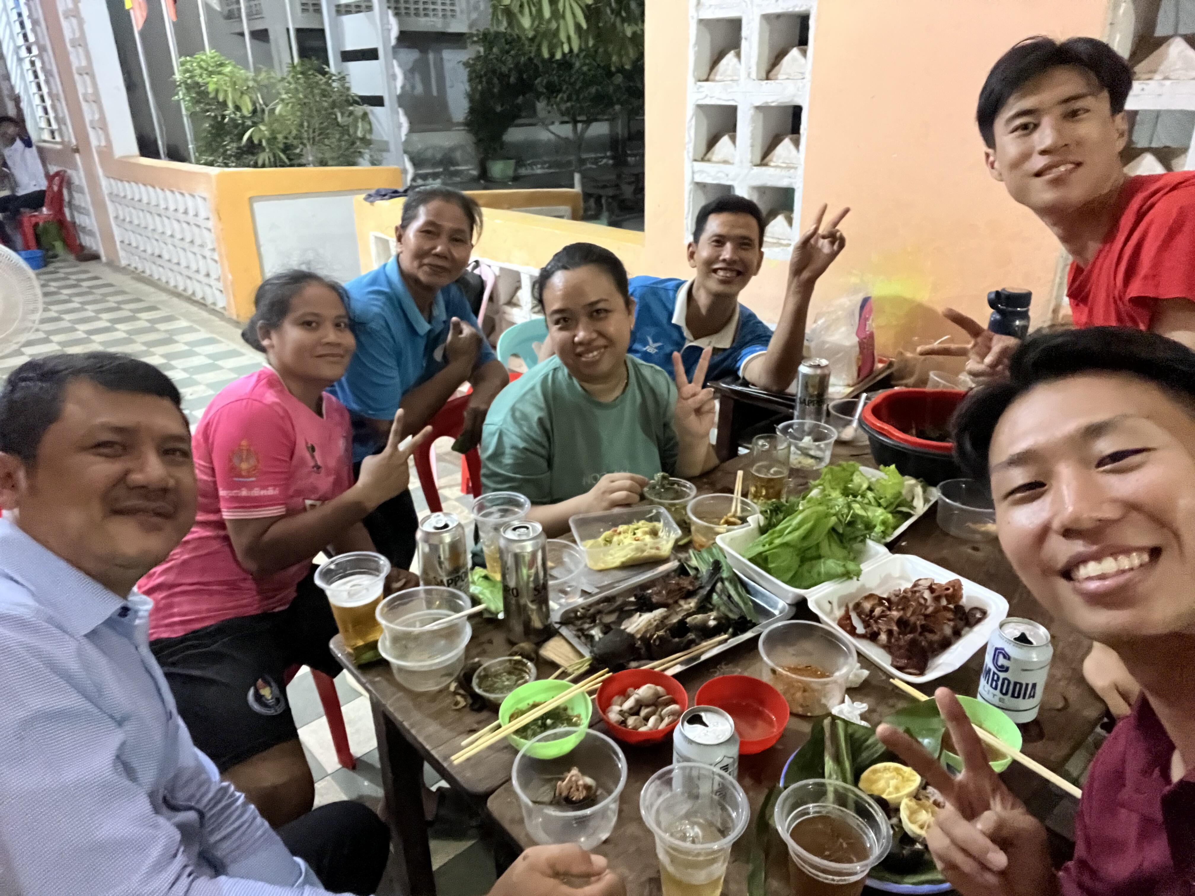 食事会や飲み会など日本では、乾杯を行うのは最初の1回のみが普通だと思います。しかし、カンボジアでは1回では止まりません。食事中、誰かが乾杯というとそれにみんなが続いて乾杯する。これが数分に1回のペースで行われます(ガチです笑)何度も乾杯を求められると「もうええって」と思いながらも喜んで乾杯してる自分がいます笑