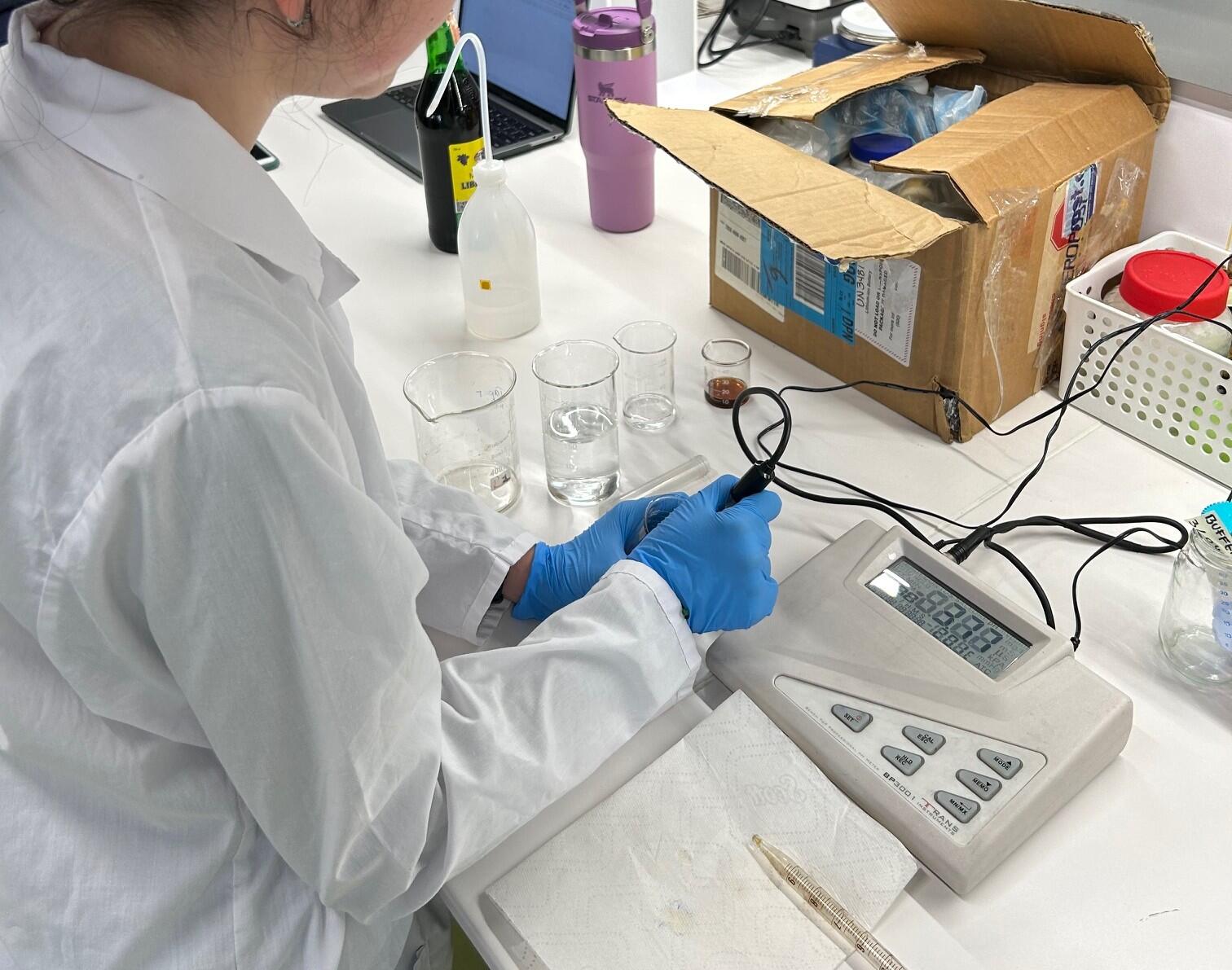 先日、コレヒオ(日本の高校に相当)の生徒たちが実習に来場し、2時間半ほど説明をしました。pH計での測定、ピペットの使い方、撹拌機の操作など特に難しいものはありませんでしたが、操作ごとに理由をつけて説明してみました。日本人のおじさんボランティアからこんなふうに教わったと、印象に残ってくれればうれしいですが、さてどうだったでしょうか。