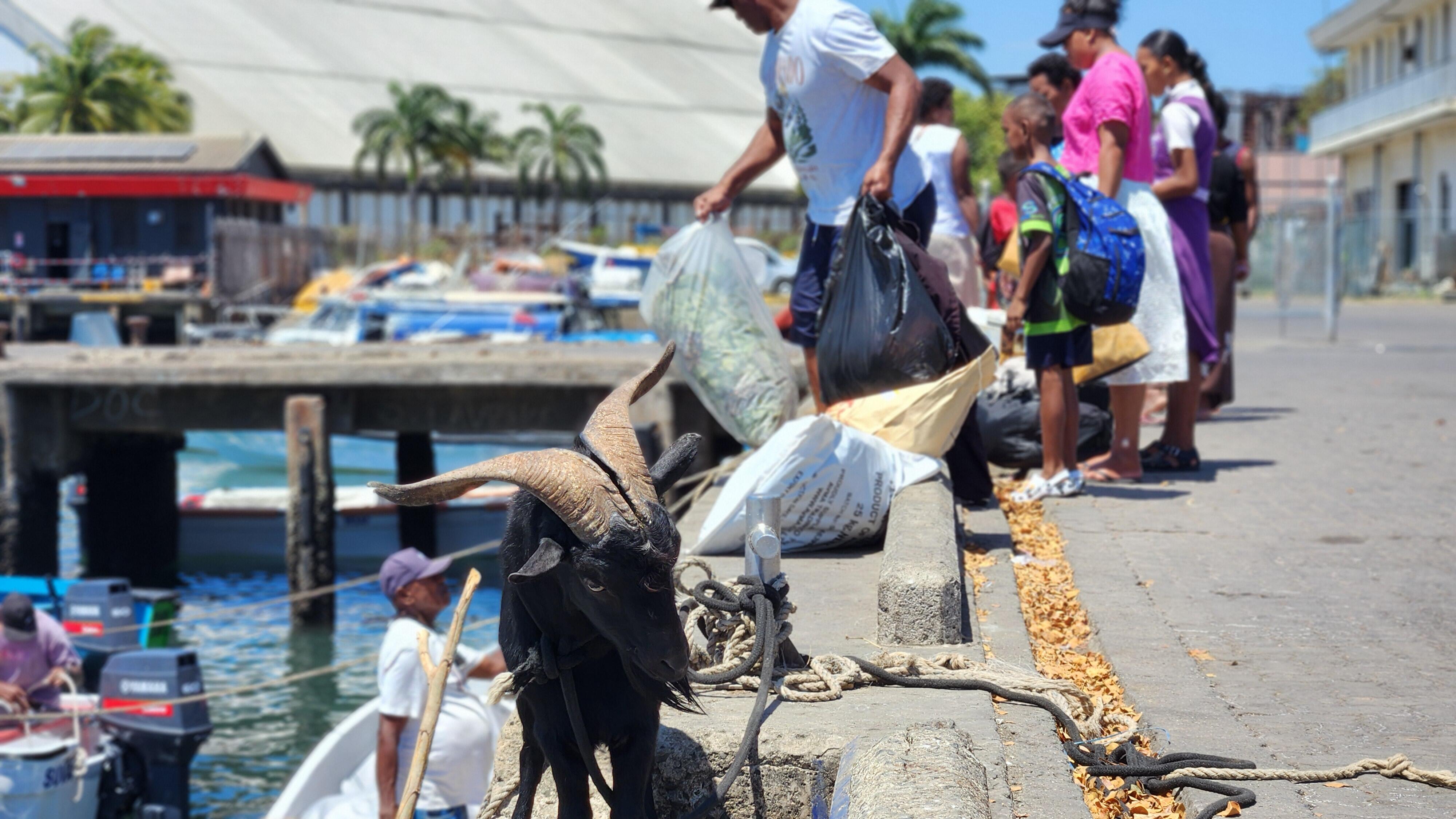 (写真)ヤギは肉を目当てに港によく運ばれてきます。このヤギは500フィジードル(※)でした。※約3万円ほど