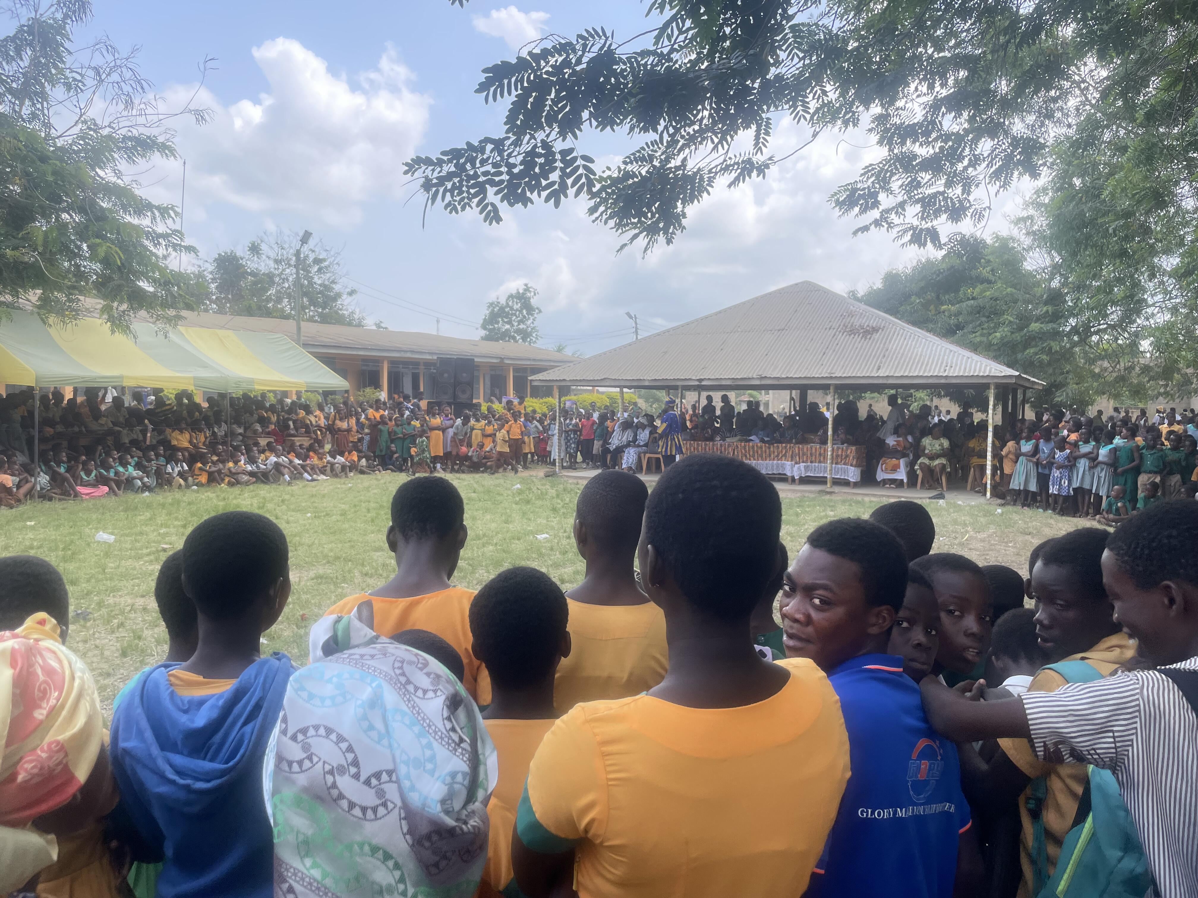 ガーナの国歌を現地語であるエウェ語で歌い、エウェ族の伝統的なダンスである「Agbadzaアグバザ」を踊ります。
