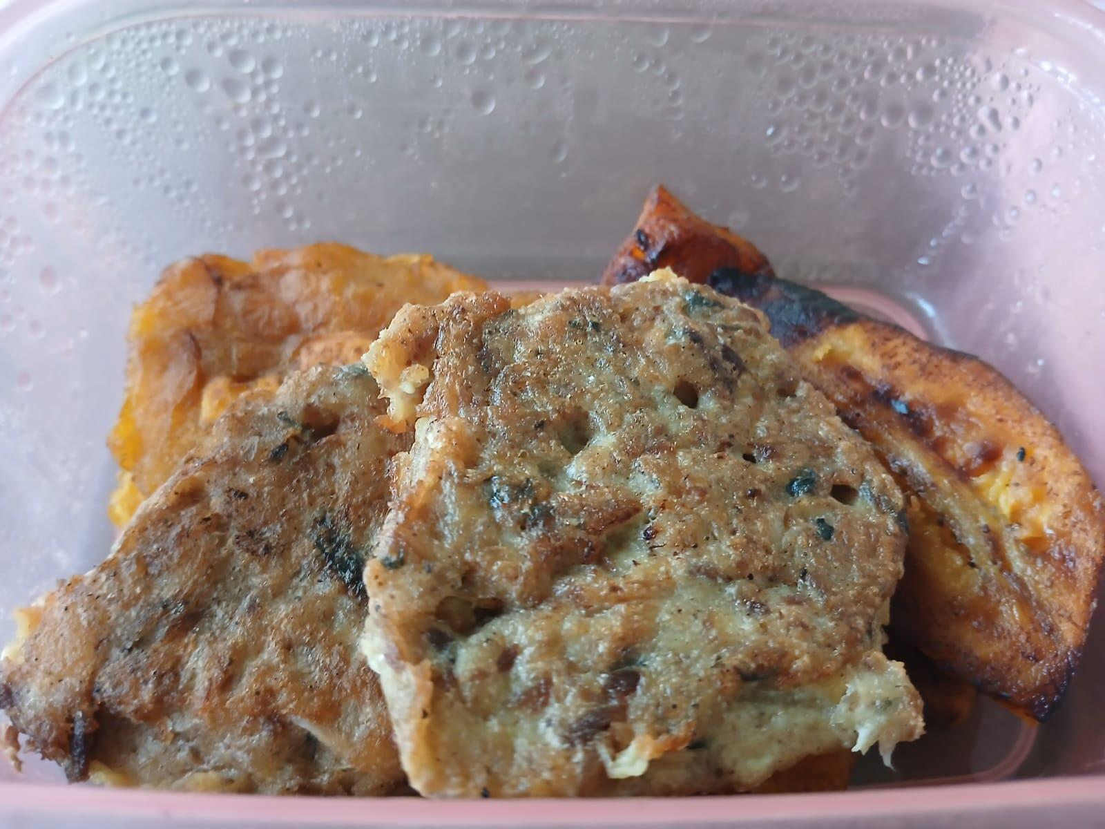 簡単に言うと、イワシの天ぷらと緑バナナフライの組み合わせです。