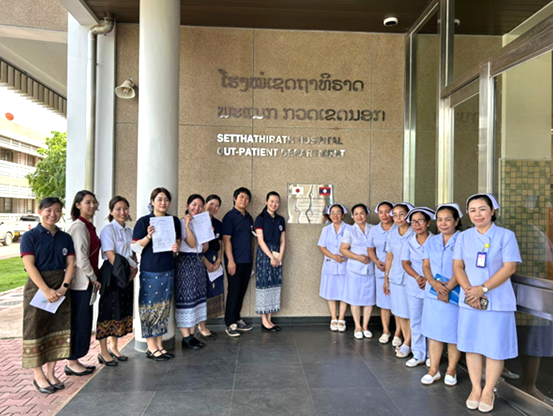 【報告①:中央病院と地方病院がつながる環境づくりを目指して】 2025年5月26日と5月28日の2日間、分科会メンバー全員で首都のマホソット病院とセタティラート病院の視察を行いました。首都の中央病院から地方の県病院、郡病院とそれぞれの医療レベルの病院に隊員がいることを活かし、本来ならば実施困難である地方病院のスタッフが直接中央病院を視察するという機会を得ることができました。今回の視察では、中央病院での取り組みを直接見学、説明していただくことで国内でもトップクラスの医療水準を知ることができたと同時に、地方病院の現状をより具体的に中央病院に知ってもらう機会にもなりました。また、隊員同士や各病院の現地スタッフも交えて話すことで、今回の視察を今後の活動にどのように繋げられるかを相談することもできました。