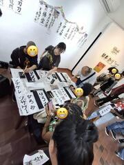 来場者のお名前を聞き取り日本語に変換し、かな文字にて実演作成したものを記念にお渡ししました。口コミが話題を呼び、30分を超える順番待ちの列ができました。当日は300名を超える方にお名前を書いた半紙を贈呈しました。