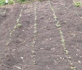 写真2 PNGの慣行栽培である条播きによる緑肥(クロタラリア)の発芽状況