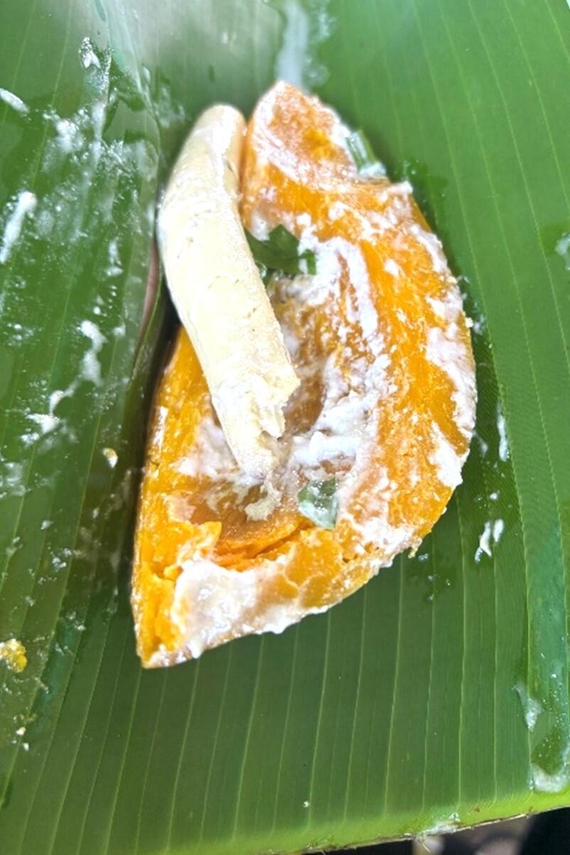 こちらはかぼちゃと魚肉をココナッツミルクで蒸したもの。