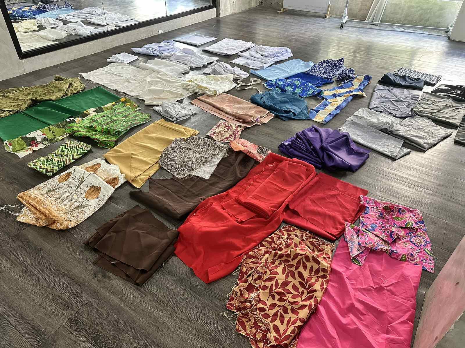 私たちの布雑貨の材料は、近くのマーケットの仕立屋さんから寄付していただくはぎれ布。