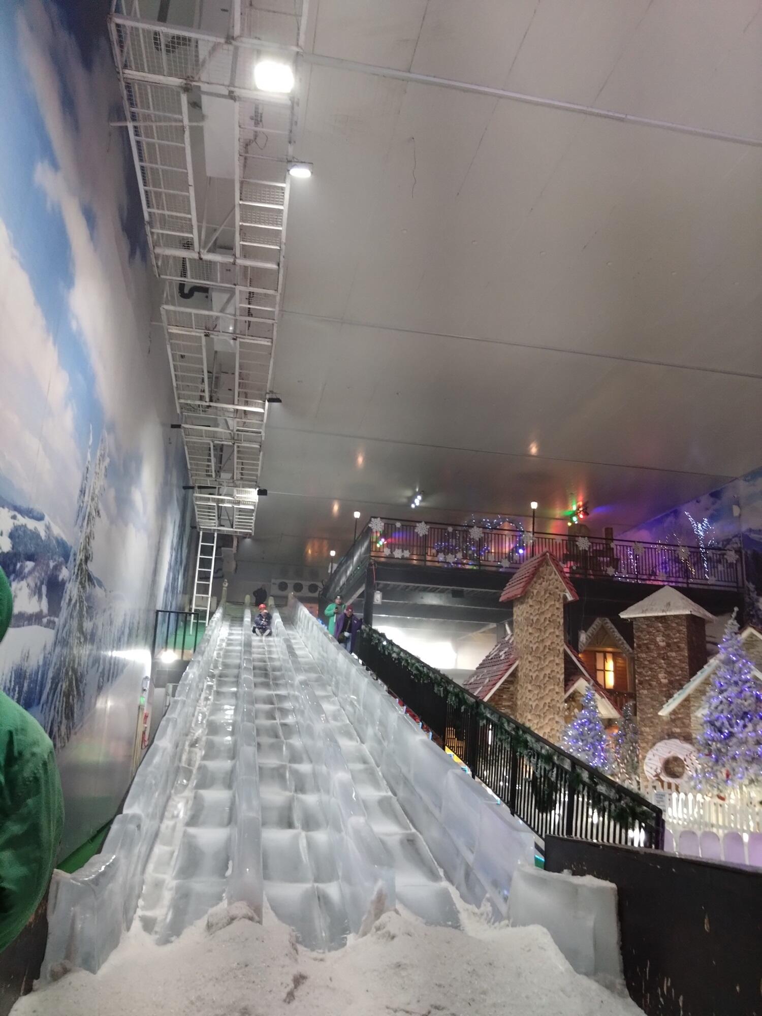 息子さんと氷の滑り台で遊んだり、氷で作られた