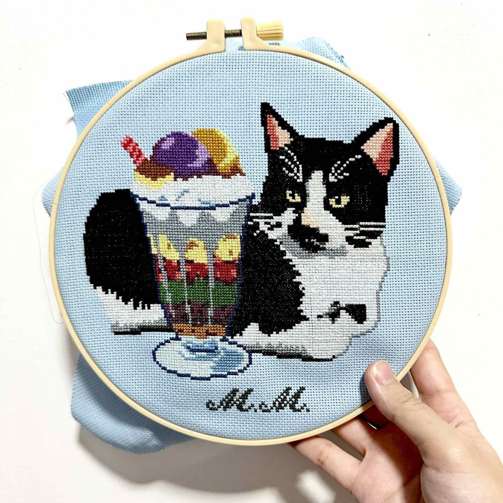 これは糸を交差させて「×(バツ)」の形に刺していくクロスステッチという刺繍技法で、