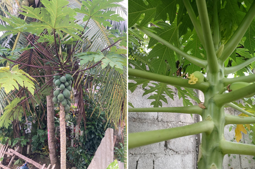 続いてはパパイヤの木。実がなっているのはよく見ますが、