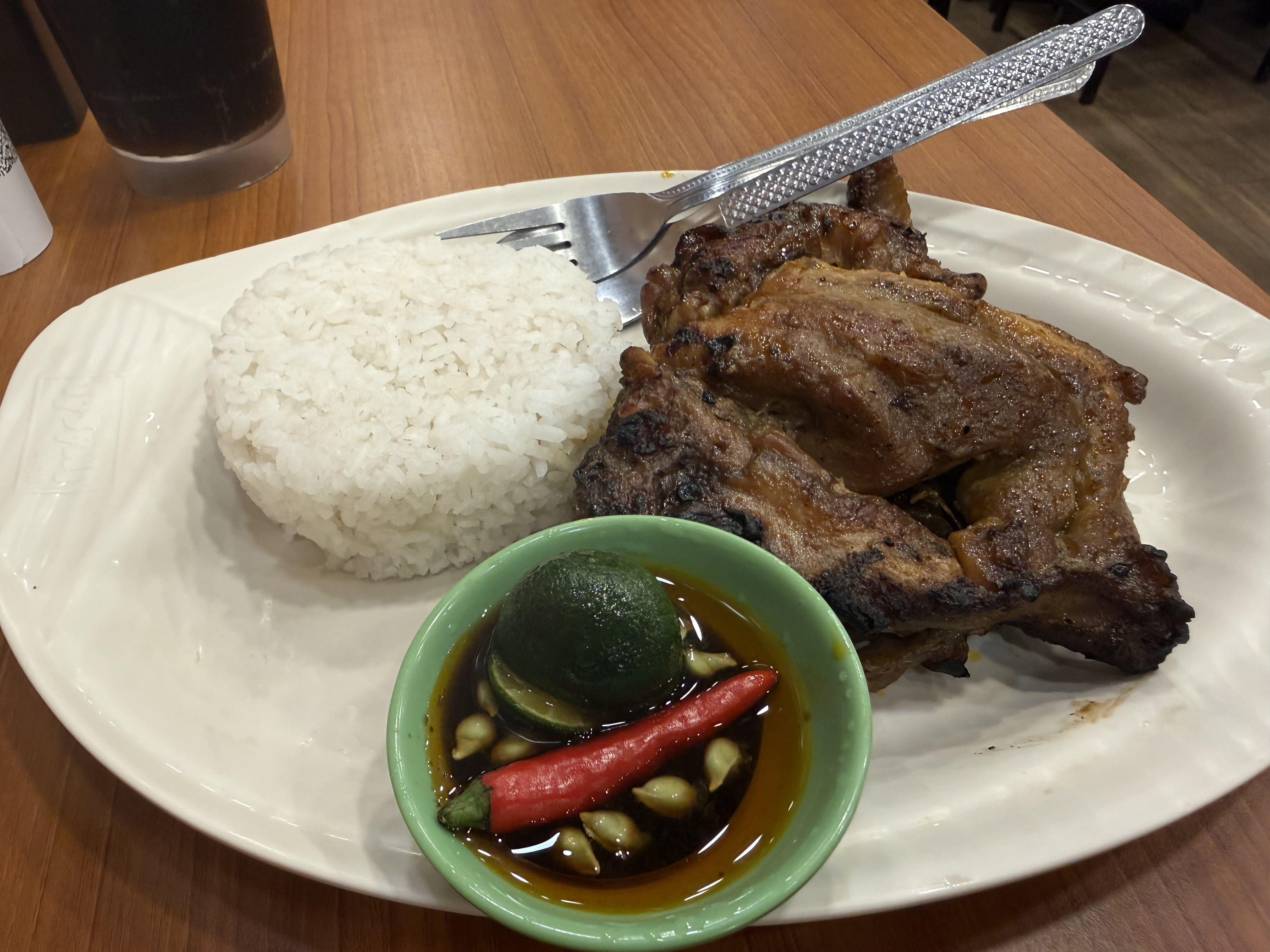 フィリピンに着いた当初、スプーンとフォークでどうチキンイナサル食べるのか、