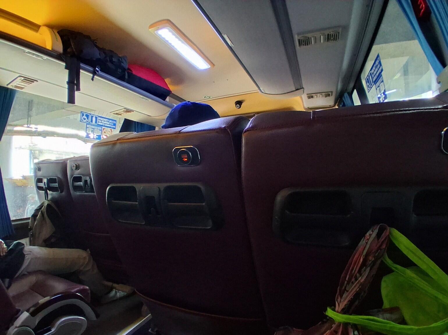 「8時のバスね」と言われたので、バスに乗り込んでシートベルトして待っています(この時点で時刻は7:40)。