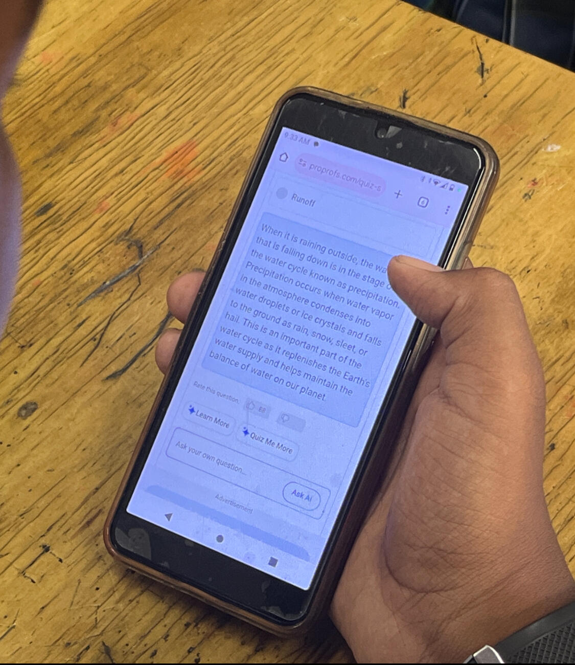 ”Who am I ?" と先生が問いかけるところから導入が始まりました。「私は地球の70%を覆っています」「私は形を変えながら地球上を回っています」と子どもたちに水につながるキーワードを出させながら水の循環への疑問を引き出しました。その後、蒸発や雨の降る様子をアニメーションで画面共有しながら子どもたちは自分の端末を見ます。それを見ながら気づきや疑問をチャット機能で共有していきます。