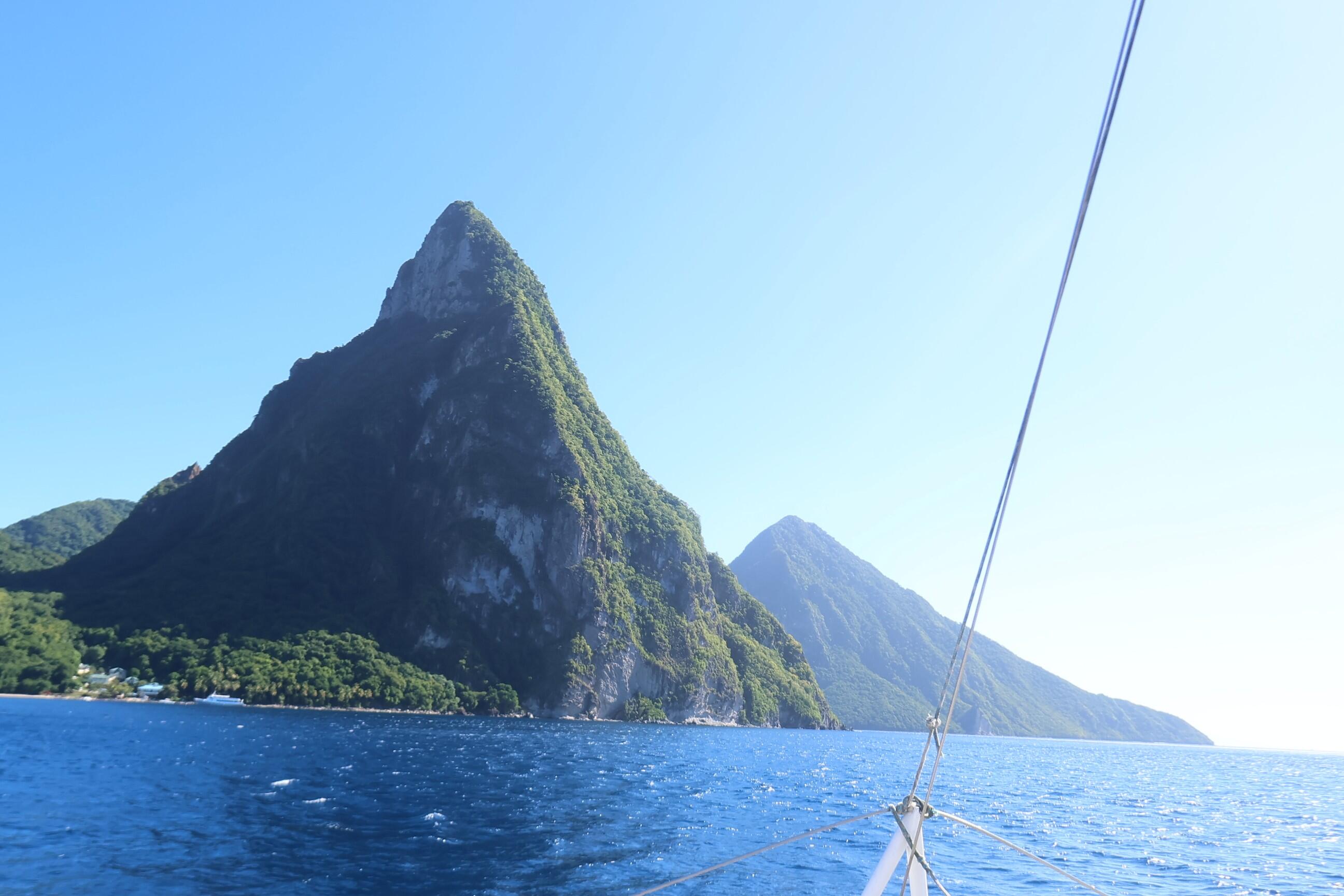 ピトン山も海の上から眺めることが出来る。