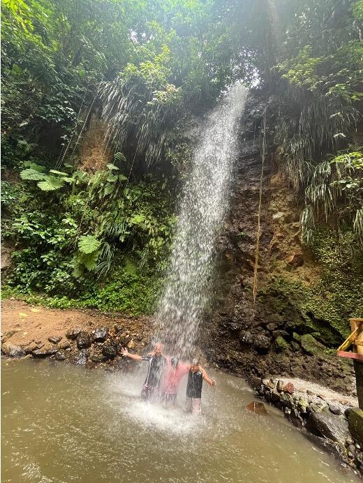 そして、最後の宝はToraille Waterfallです。熱帯雨林ジャングルに突如現れた滝は、宝探しをしている海賊たちに、宝物発見にも匹敵するほどの狂気の喜びを与えたことでしょう。写真しかありませんが、皆さんにも宝島感が伝われば幸いです。Torailleの語源には、諸説が考えられるようですが、私が気に入っているのは「銃の一斉射撃」です。私自身も滝に打たれてみたのですが、50フィートの高さから落ちてくる水の勢いは凄まじく、まさに「銃の一斉射撃」を受けているような感覚に陥りました。休日に複数の隊員と共に訪れたのですが、滝に打たれる彼らの姿を見ていると、どの隊員についても漏れなく、子ども時代を容易にイメージすることができました。もちろん、偉そうなことを言うつもりは全くありません、私自身も見事に童心に立ち戻れたのですから。人は幾つになっても、とても無垢な心で、自然の豊かな恵みに抱かれることができるようです。誰もが皆、それぞれ心の中に、美しく輝く宝物をもっているのでしょうね。