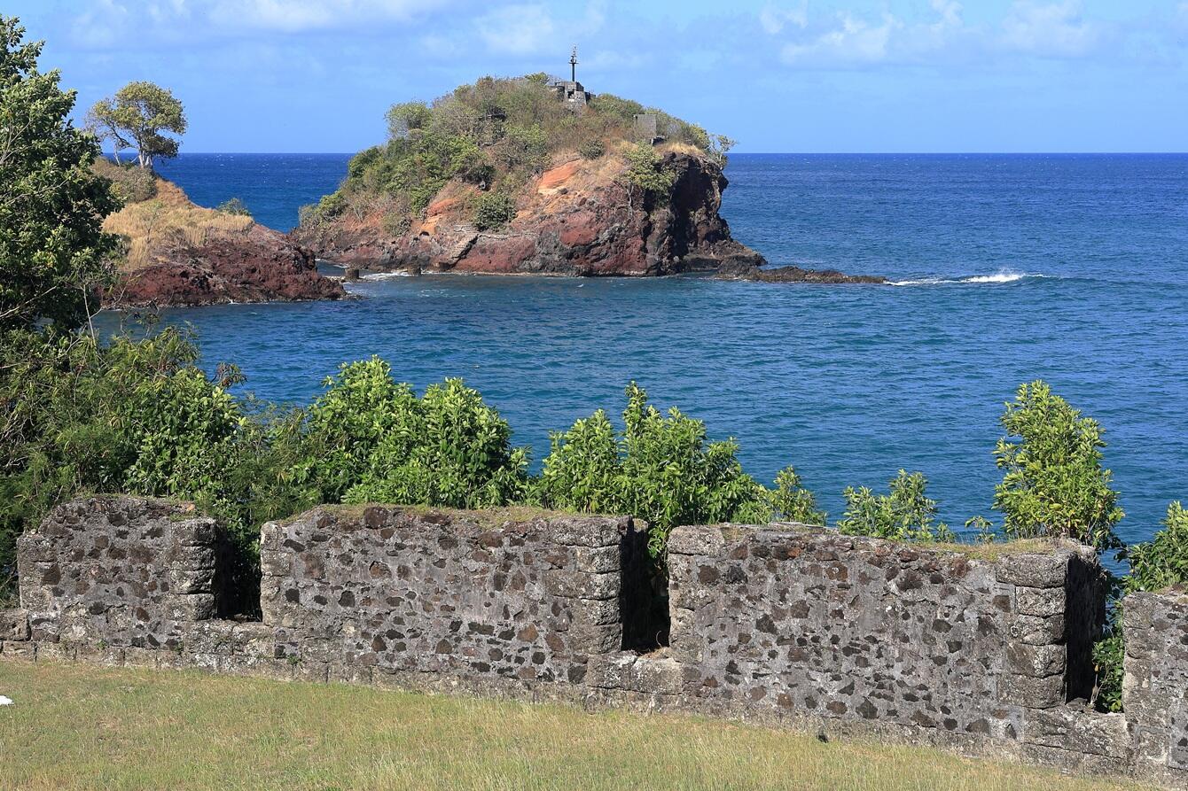 首都カストリーズのウォーターフロントには停泊中のクルーズ船を高台より眺めることが出来る。対岸にはビジー灯台や飛行場が見える。そして、タピオン病院近くの集落は美しい岬のコミュニティーなのだ。