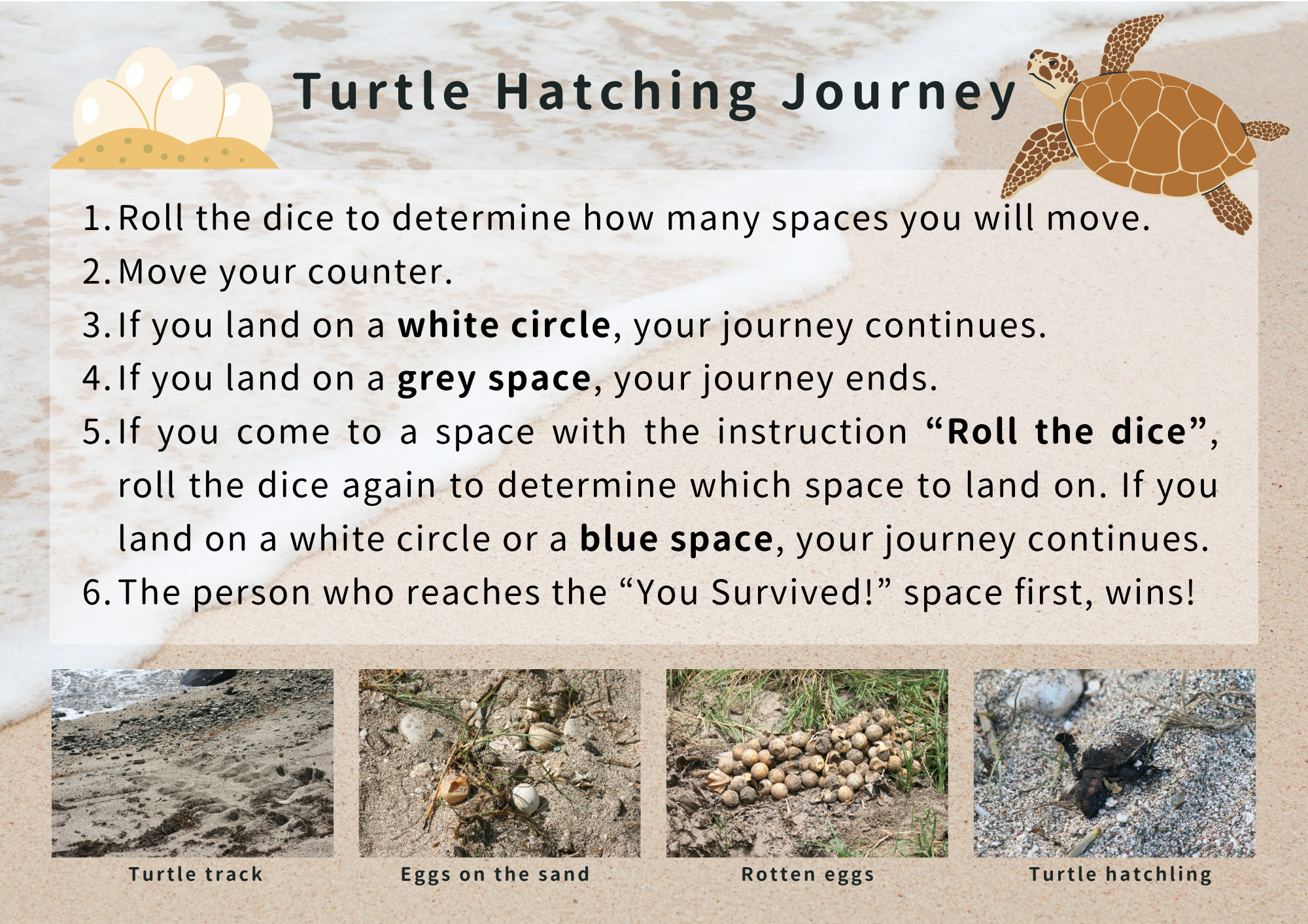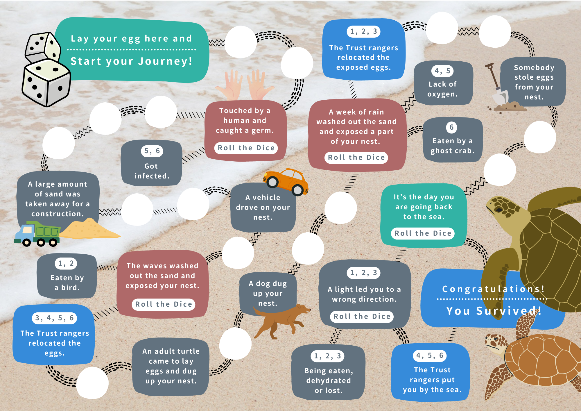 ウミガメたちの厳しいサバイバルの実情を、遊びながら学んでもらうことがねらいです。