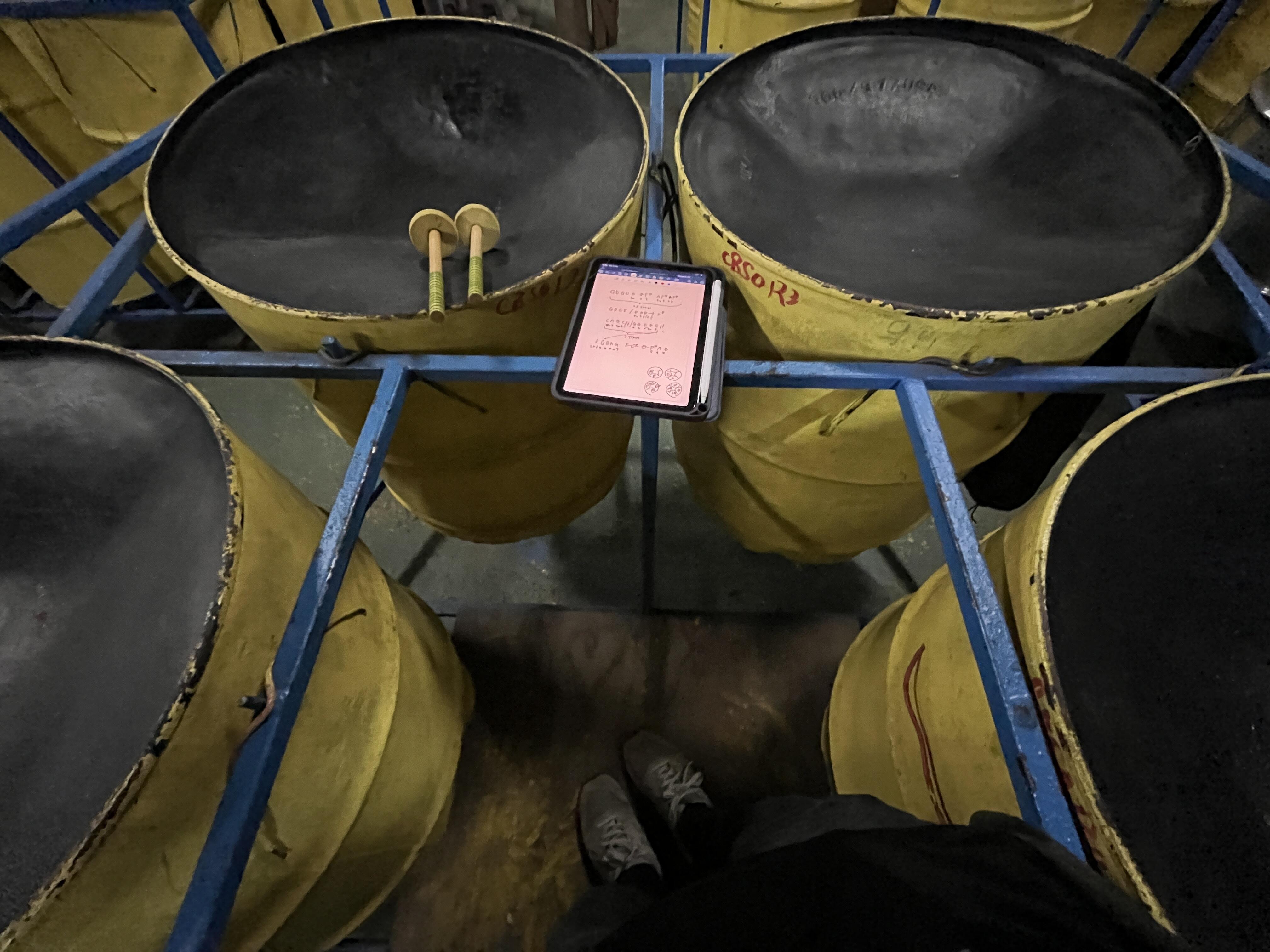 今年も私が担当するのは、テナーベースと呼ばれる低音パート。4つのドラム缶でできたスチールパンに囲まれて演奏します。練習初日、パンヤードへ行くと去年一緒に厳しい練習を共にした仲間たちがいました。8ヶ月ぶりくらいに顔を合わせて、今年も頑張ろう!と熱い握手を交わしました。