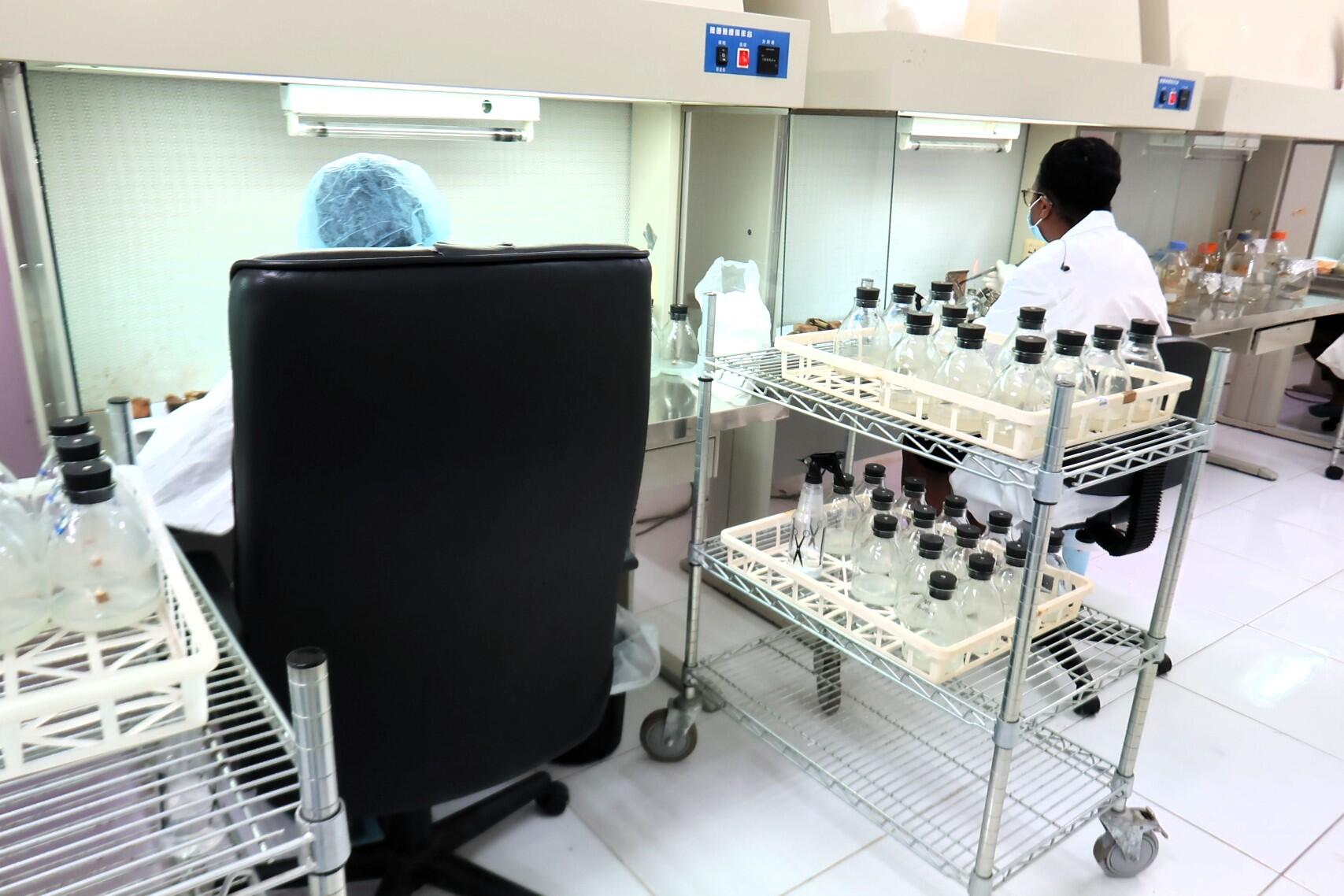 Tissue Cultureとは組織培養のこと。植物と植物の組織を掛け合わせて品種改良する仕事をしている。ここでは、蘭 Orchidの苗の栽培もしている。
