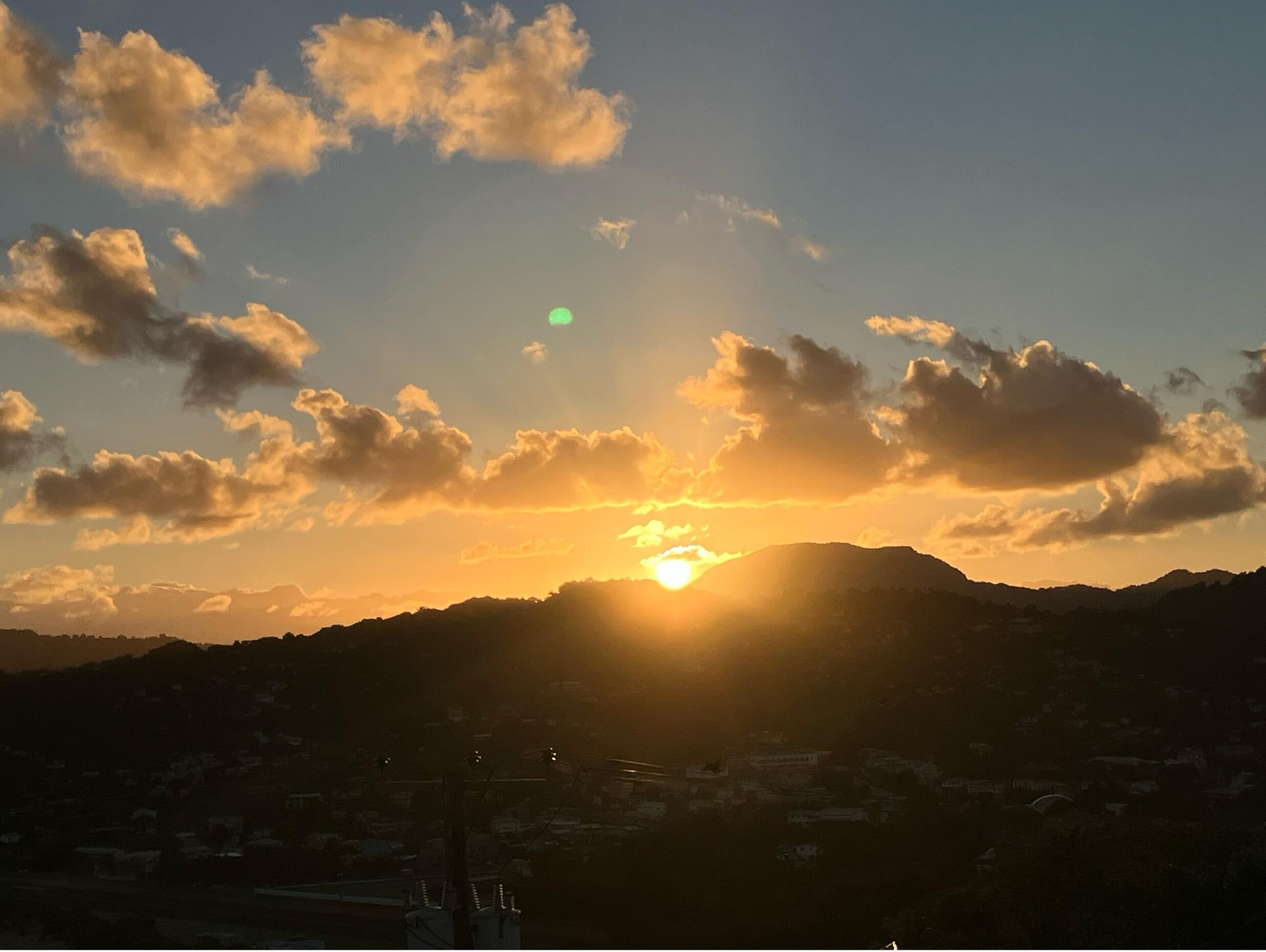 さて、日本における元日の恒例行事として、私は長年、初日の出を拝んできました。セントルシアにおいても、この習慣を途絶えさせたくなかったので、あらかじめ計画を立てて、元日の夜明けを迎えることにしました。場所は、毎週土曜日早朝にジョギングで訪れているVigie灯台。私が居住している首都カストリーズは島の北西部に位置していますので、カリブ海の水平線に沈む夕日を鑑賞するのには絶好のロケーションです。これに対して、大西洋の水平線から昇る朝日は、山にさえぎられて、味わうことができません。ところが、北部の山はなだらかで、丘と呼べるような高さですので、丘の間から昇る初日の出を拝むことは、十分できそうなのです。元日の日の出の予想時刻は、6時28分頃。従って、居宅を6時に出発して、約3.5km離れた灯台を目指してジョギングすることにしました。夜明け前ではありますが、薄明かりがありますので、なんとか懐中電灯なしで走ることができます。日本であれば、晴れか曇りか、初日の出を拝めるか拝めないか、大いに心配する時節です。しかし、ここセントルシアの1月1日は乾季のまっ只中ですので、幸い天候を心配する必要はありませんでした。もちろん、初日の出を拝む心は、日本においても、セントルシアにおいても、全く変わるところはありません。家族の健康と、JICA海外協力隊員の無事帰国を祈念して、初日の出に向かって静かに手を合わせました。