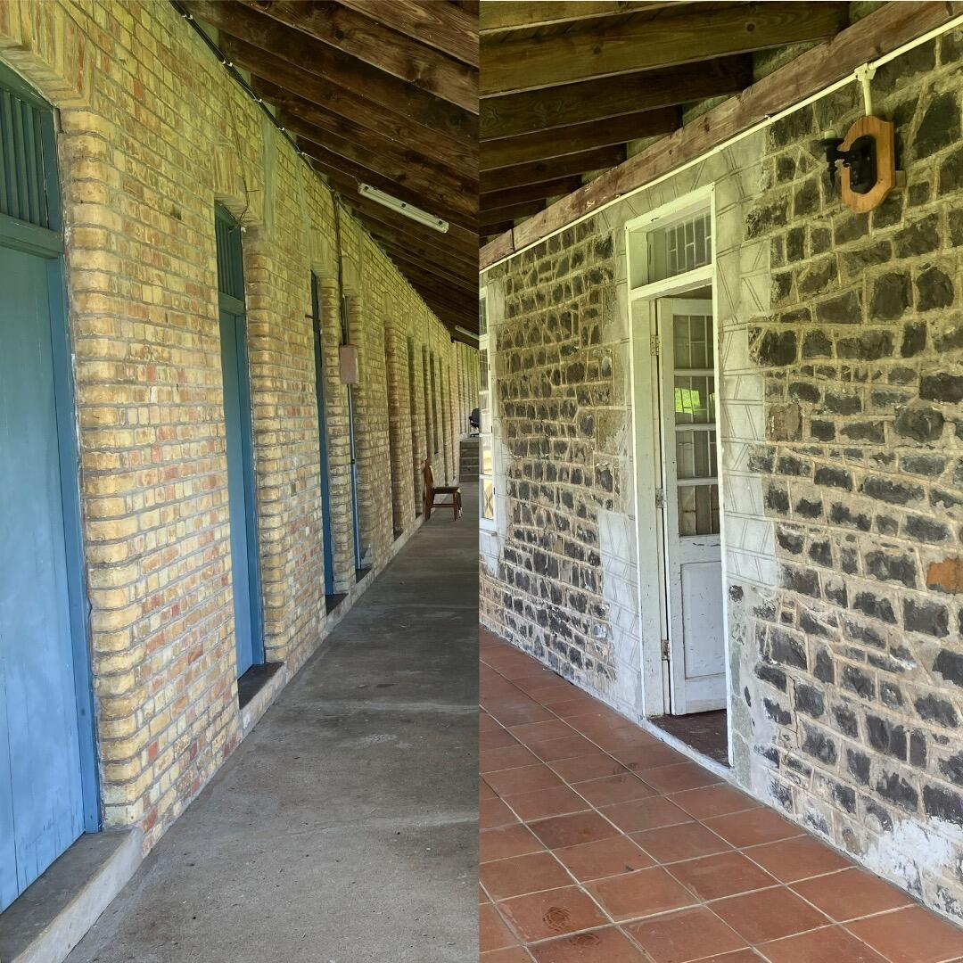 私が個人的に興味をもっているのは、歴史的な建造物の煉瓦の積み方が「イギリス積み」(写真左)と「フランス積み」(同右)に分かれているところです。植民地時代に、フランス軍によって、軍事拠点がVigieの丘から、Fortuneの丘に移されました。英仏両軍は、この要衝を互いに激しく奪い合うことになったのです。現在は、そのFortuneの丘の頂きに、私の配属先であるサー・アーサー・ルイス・コミュニティー・カレッジがあります。イギリス軍の建てた兵舎と、フランス軍の建てた兵舎を、共に仲良くカレッジの施設として利用しているのです。例えば、私は、イギリス積みのバラックで授業準備をして、フランス積みの方で授業をしています。平和使用されていることを喜びながらも、歴史の記憶を辿るとき、複雑な思いが胸をよぎらざるを得ません。カストリーズの大聖堂や、ピジョンアイランドのロドニー要塞などにもフランス積みの名残りが見られます。Vigieの丘にあるフランス大使館が、イギリス積みの歴史的建造物を利用しているのは、何ともまぁ、平和な光景ではありませんか。