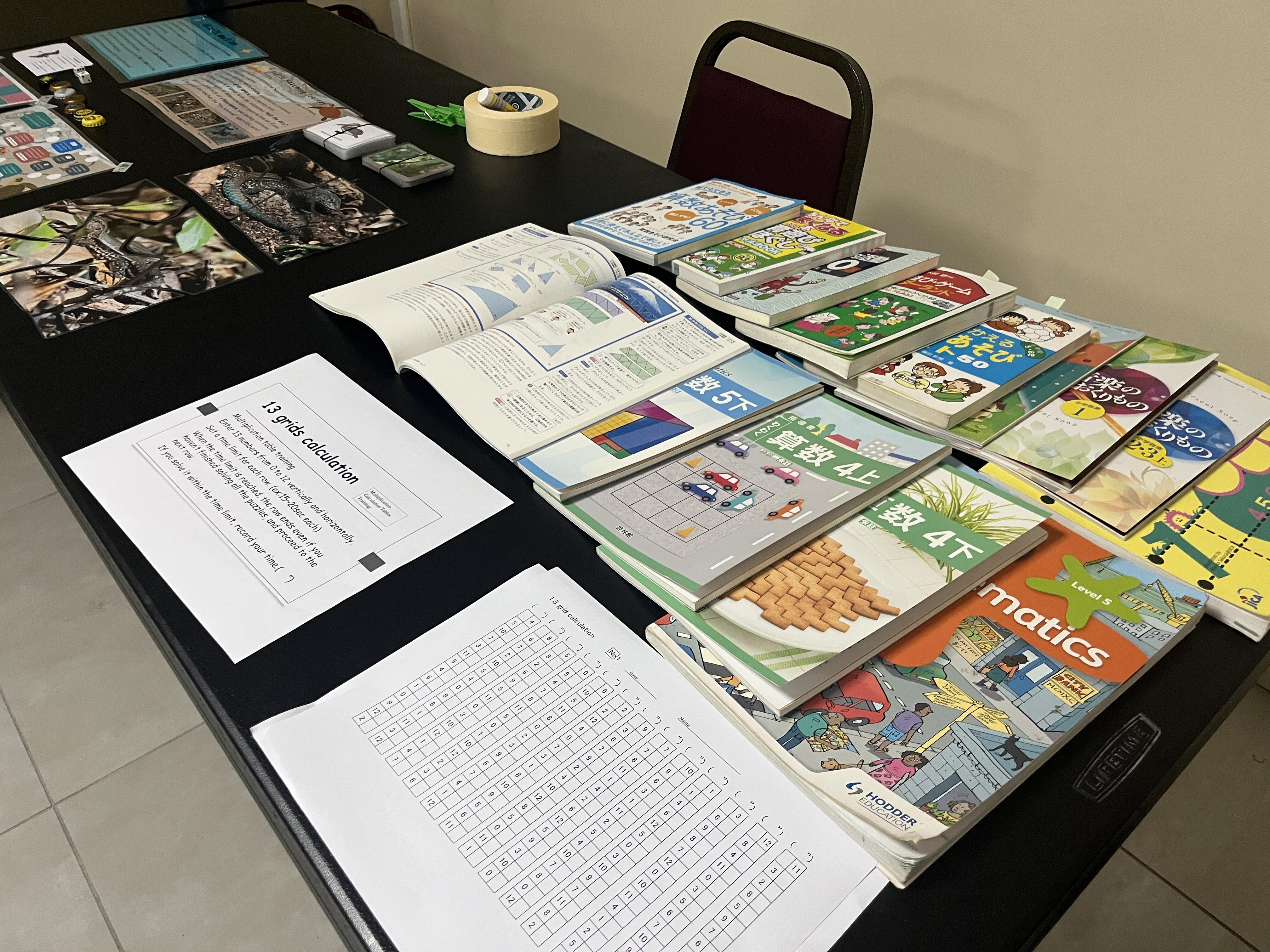 教育隊員である私は日本の教員向けの指導書なども並べて展示しました。セントルシアのカリキュラムとの違いや共通点についても話題に上がり興味を持ってくれている様子でした。この他にも特別支援教育や環境教育の教材展示、書道コーナー、日本の昔遊び、浴衣の着付け体験、日本音楽演奏など、幅広い日本の紹介で参加者の皆さんは楽しんでくれていました。セントルシアに派遣されている隊員は多くありませんが、JICAスタッフやナショナルスタッフも総出で、全員の力が合わさり日本の魅力を伝えられたのではないかと思います。またこのような素敵な機会が続いていくよう、自分も活動を頑張らなければと気が引き締まりました。