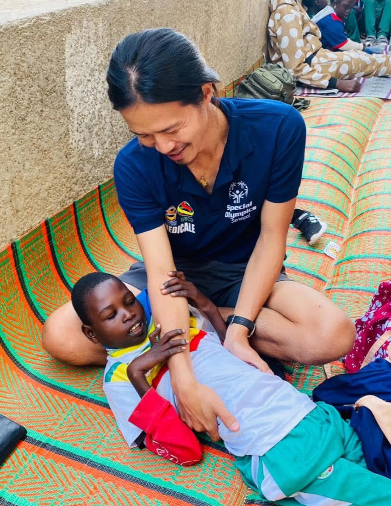 そんなセネガルという国で、私はスペシャルオリンピックスセネガルという知的障害の子供たちを対象とした組織に配属されました。セネガルではリハビリのシステムが普及しておらず、ほとんどの子は通院して満足な治療を受けることができません。しかし、リハビリが必要となる患者さんや子供たちはたくさんいます。私の所属組織は理学療法士が在籍していなかったため、オフィスにある地下室にリハビリの必要な子供を呼び、リハビリを提供することから始めました。また私の組織は1年にいくつもの地方に出張し、子供の定期診察や薬の無料配布を毎年行っていました。そのため私もその出張に同行し、地方に住む子供や痛みのある人にマッサージを行いました。首都から12時間以上バスに乗り、国境近くの村に泊まり込みで行うような同僚たちとの活動は大変なこともありましたが、とても素敵な活動に参加することができたと思っています。