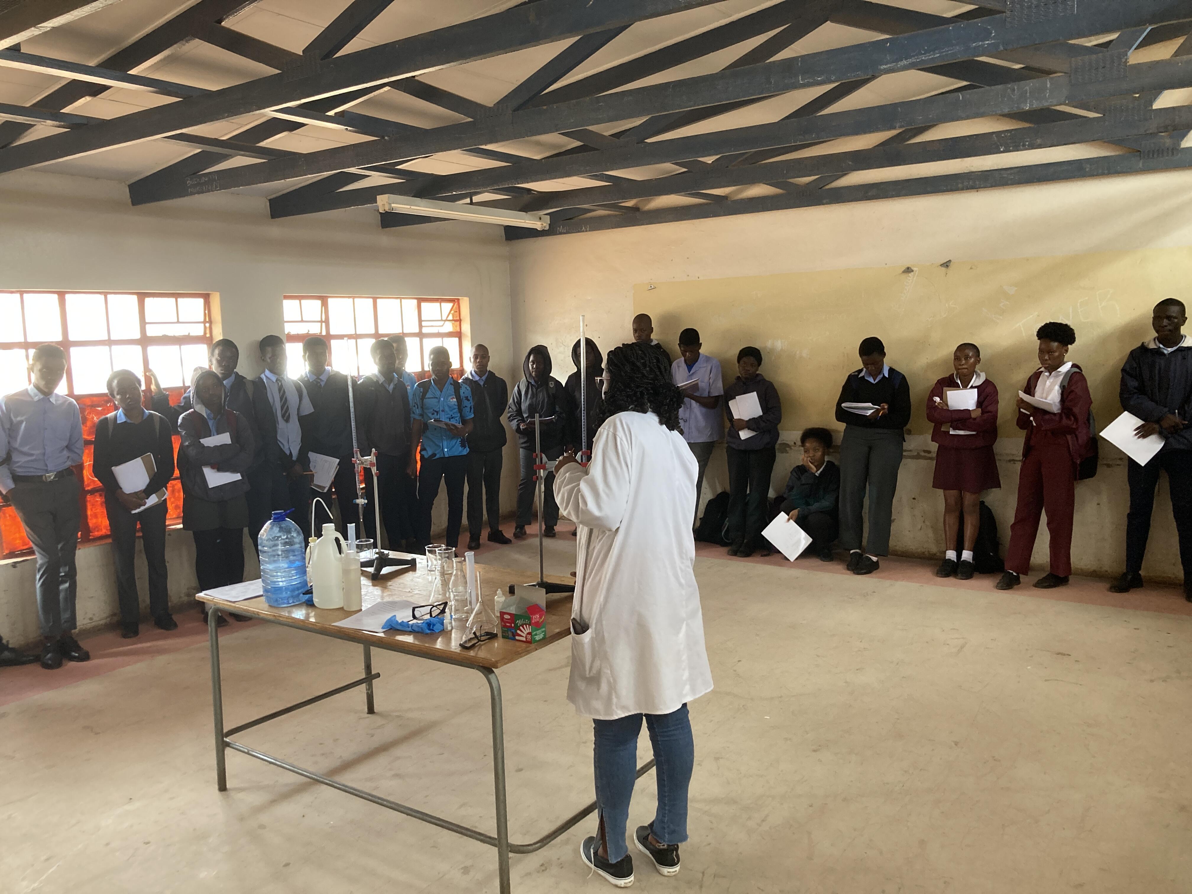 ビーカーなどの器具、実験に使う薬品などは基本的には学校にないので、私の職場であるヴワニ科学資源センターから学校にそれらをもっていき、出張型の実験を行っています。