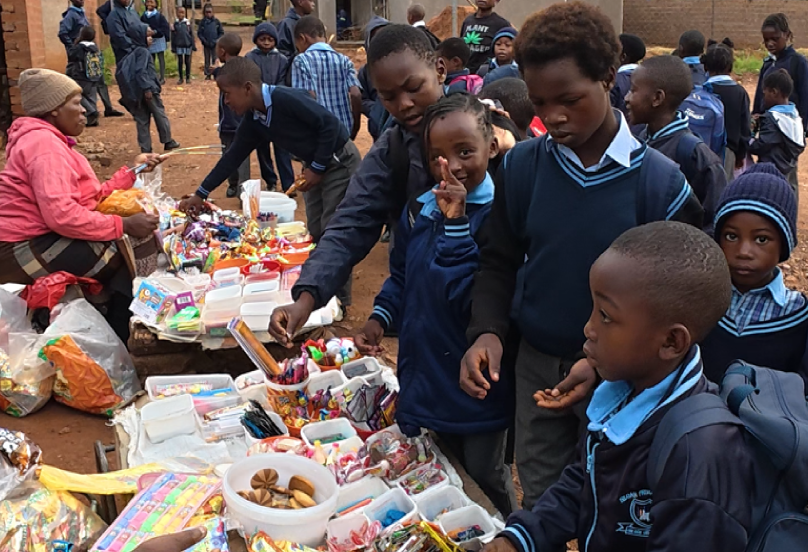 日本と大きく違うのが、学校に「スナック(軽食)」を売りに来る人がいることです。 子どもたちは物売りの人からスナックを買って食べたり、家から持ってきたスナックを楽しんだりしています。 「学校でお菓子を食べていい」というのは、日本の小学生からすると、とても羨ましい光景かもしれません。