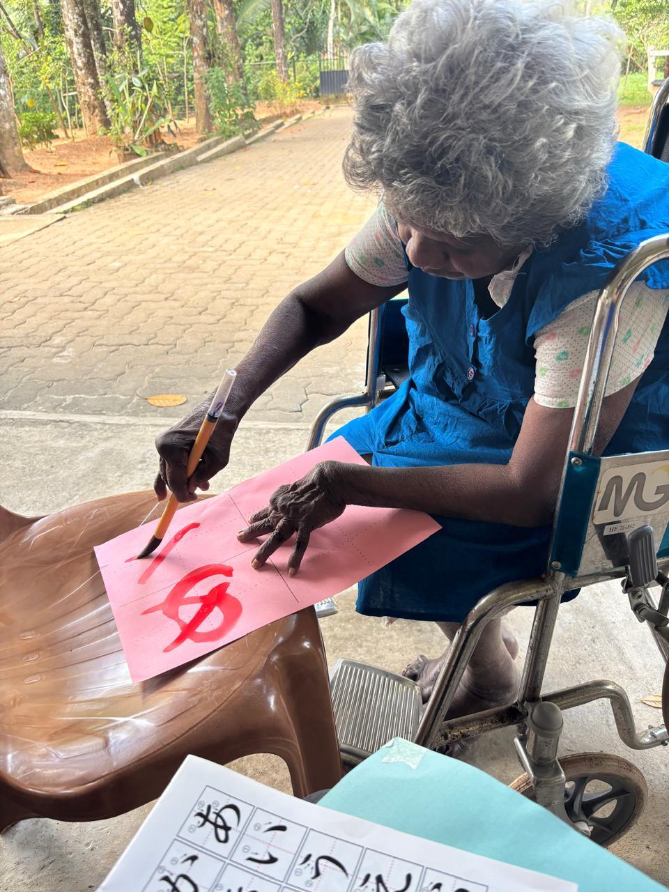 体操に参加できた入居者さんは本当に楽しそうな顔をされていて、習字にも挑戦してくれました。