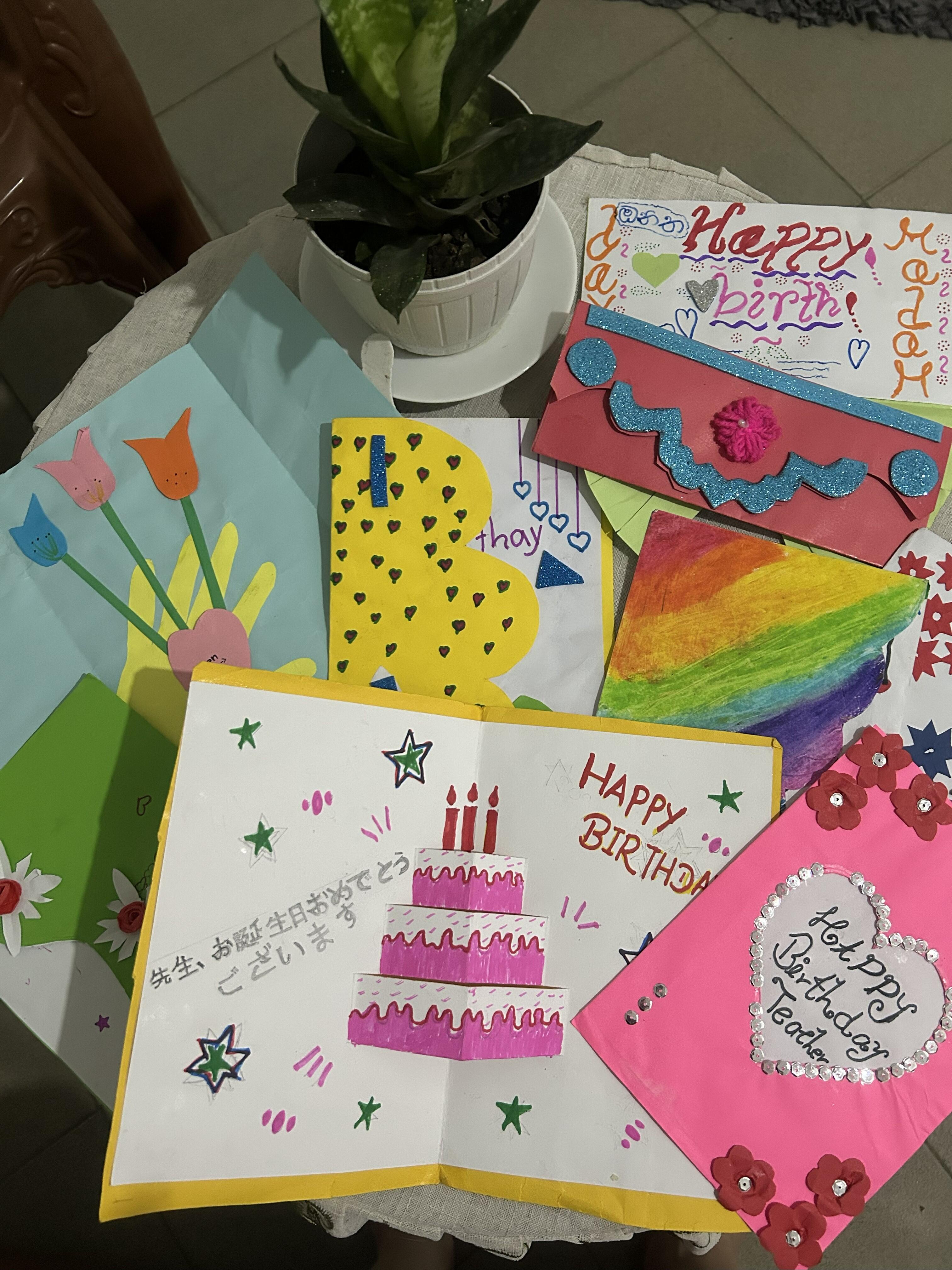 すると・・・家にケーキをもったカウンターパートと生徒たちがハッピーバースデイの歌を歌いながら