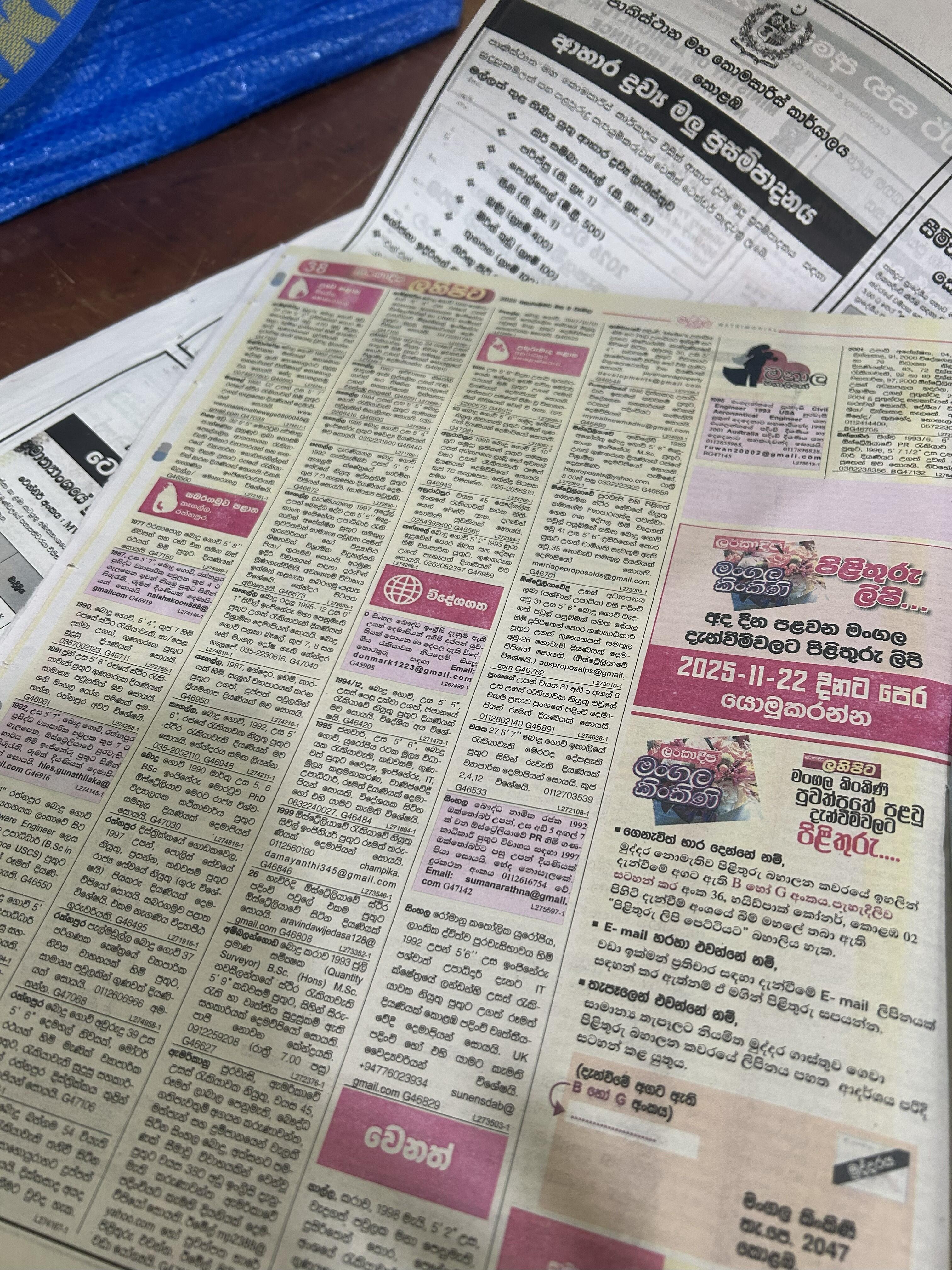 スリランカでは、雑誌はあまりみかけないので新聞が情報源なのかもしれません。