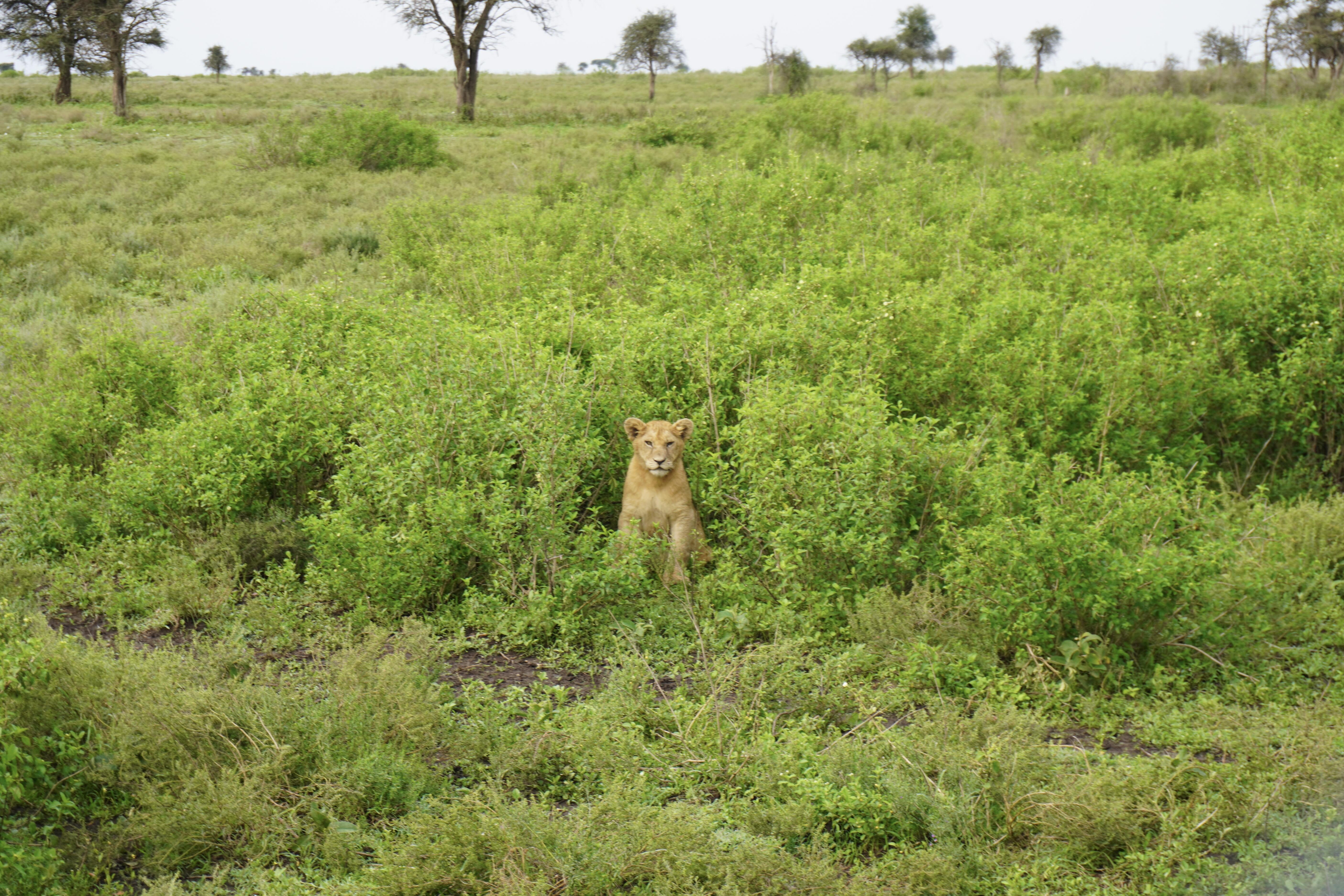 まさかの私たちが乗っている車がその茂みに突っ込み、ライオンを茂みから追い出してしまい、