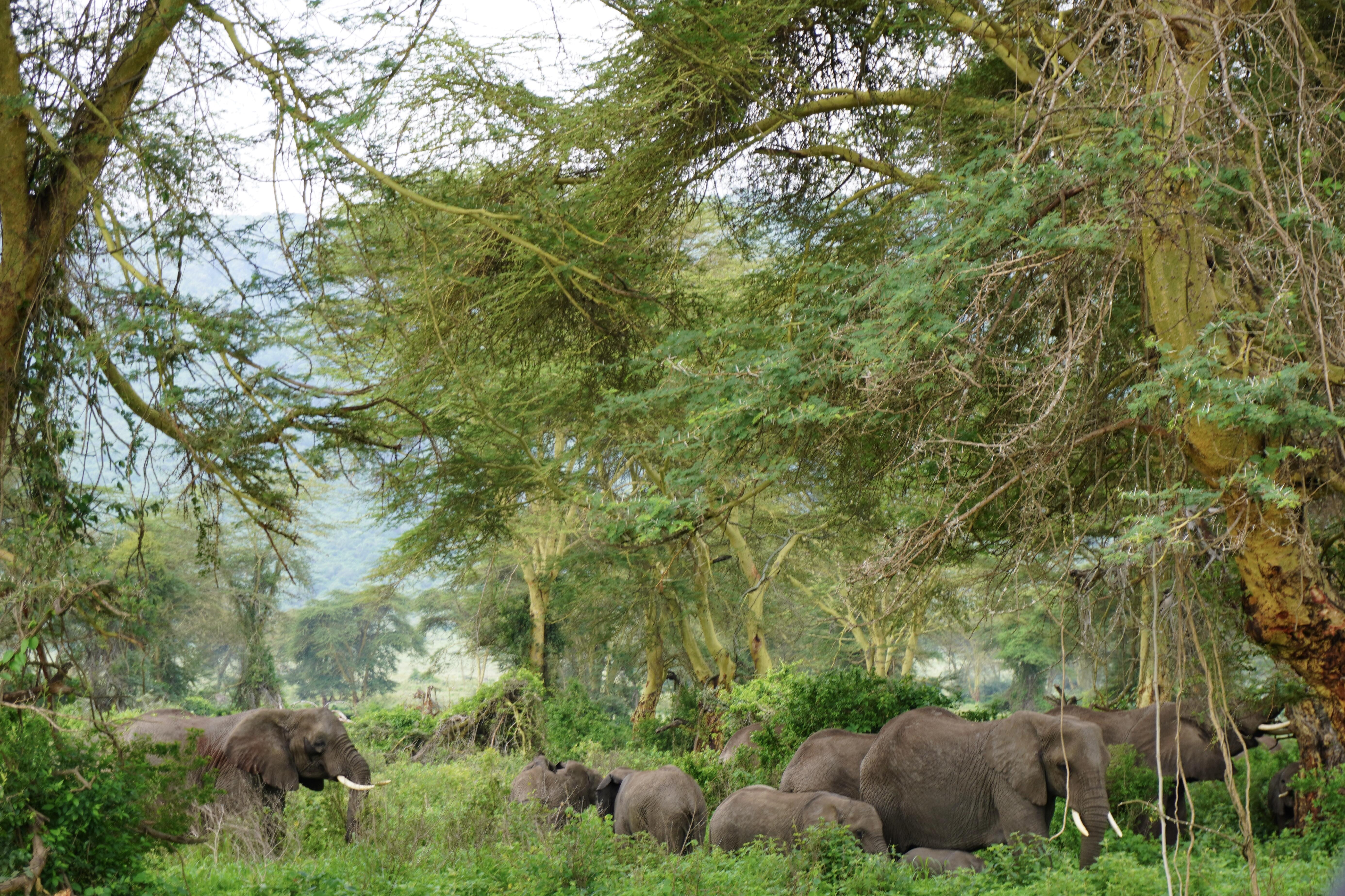 ンゴロンゴロ保全地域のクレーター内で一番印象に残っているのはゾウの群れに遭遇できたことです。