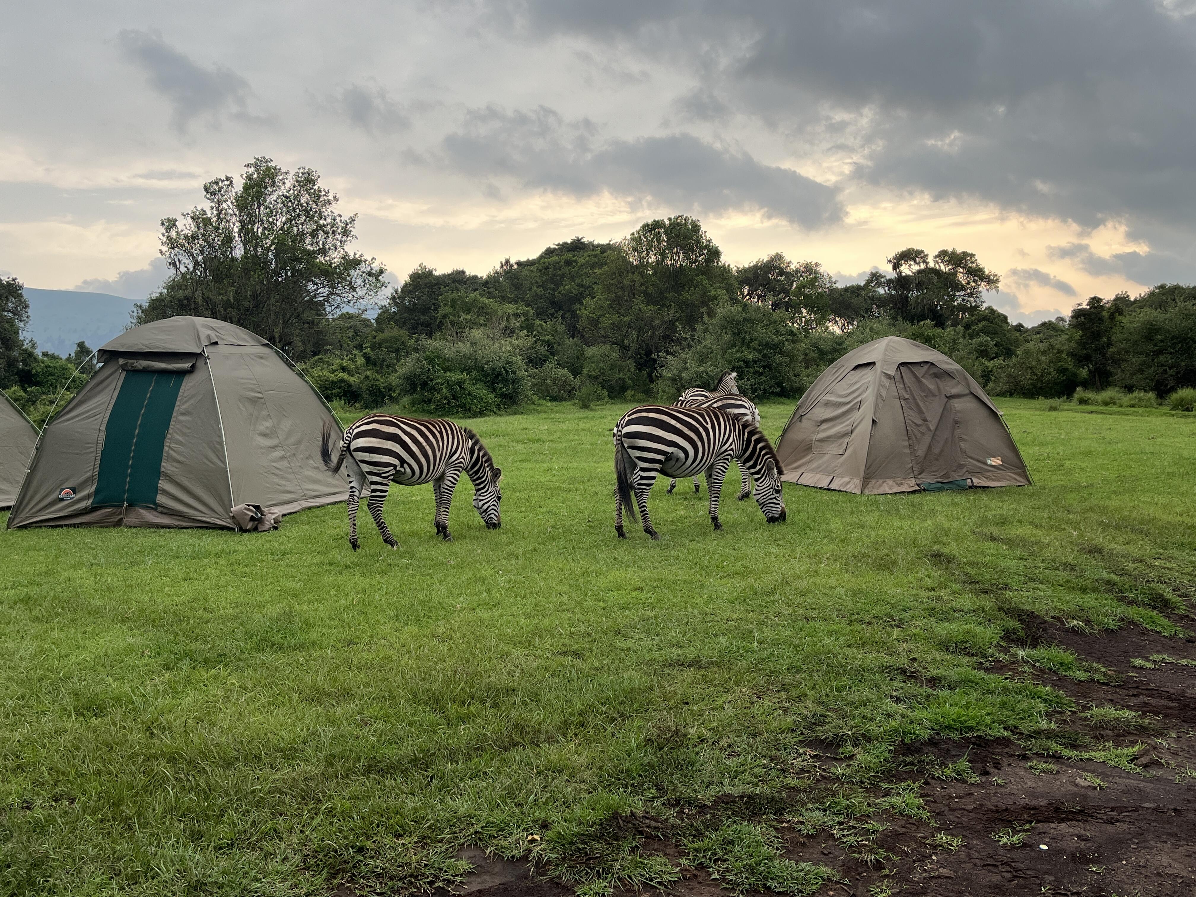 日の入り前にテントの近くまでシマウマが来てびっくりしました。