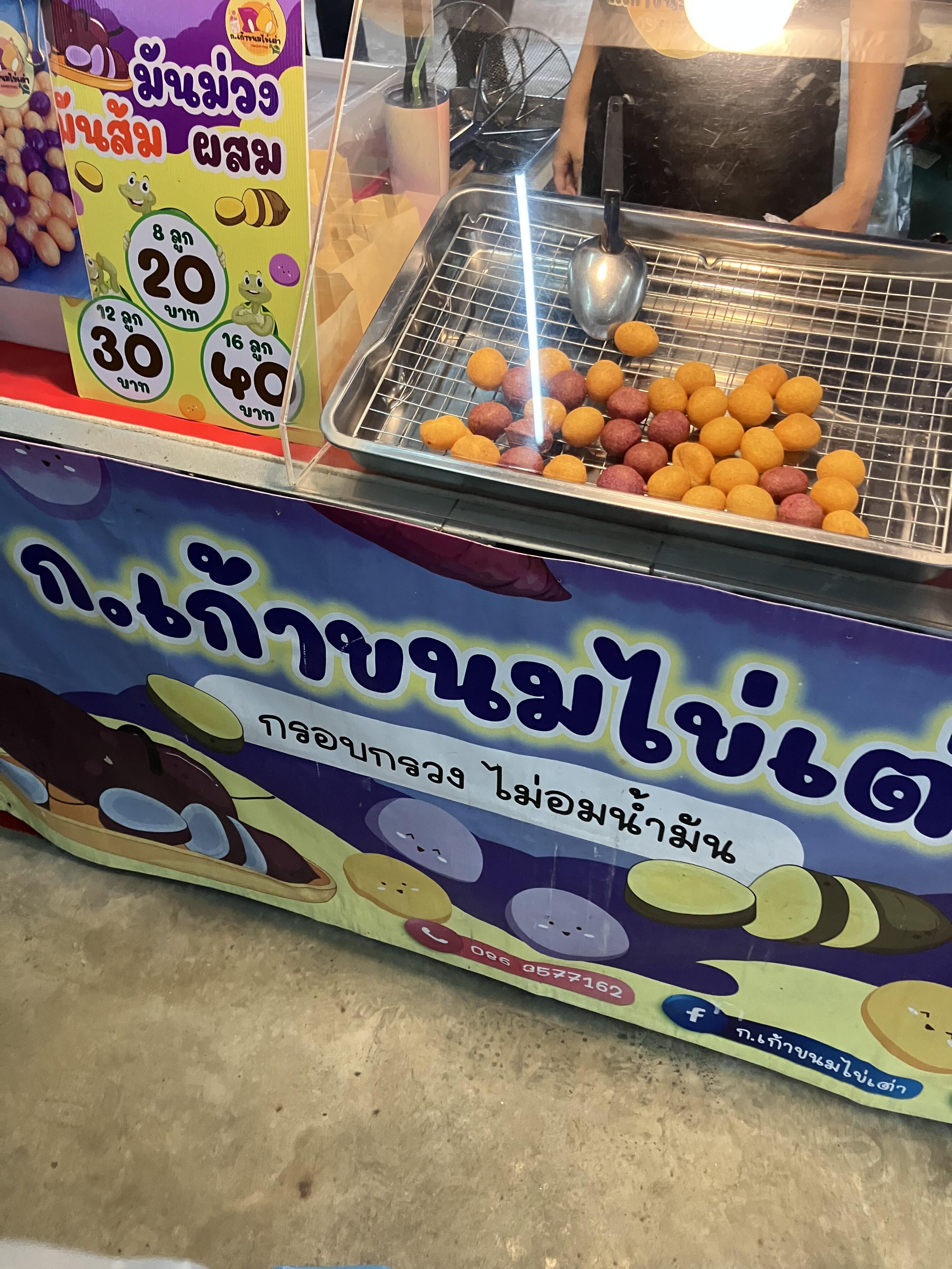 これは 「カノム・カイ・ノック・クラター(ขนมไข่นกกระทา)」 です。おすすめのカノム(お菓子)です。