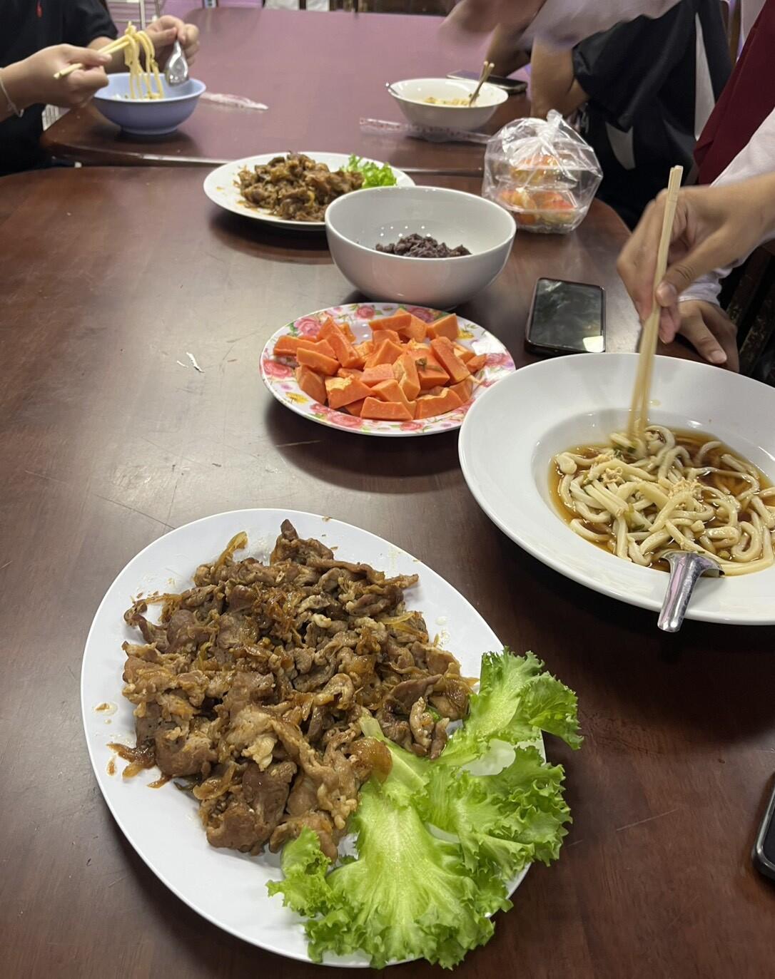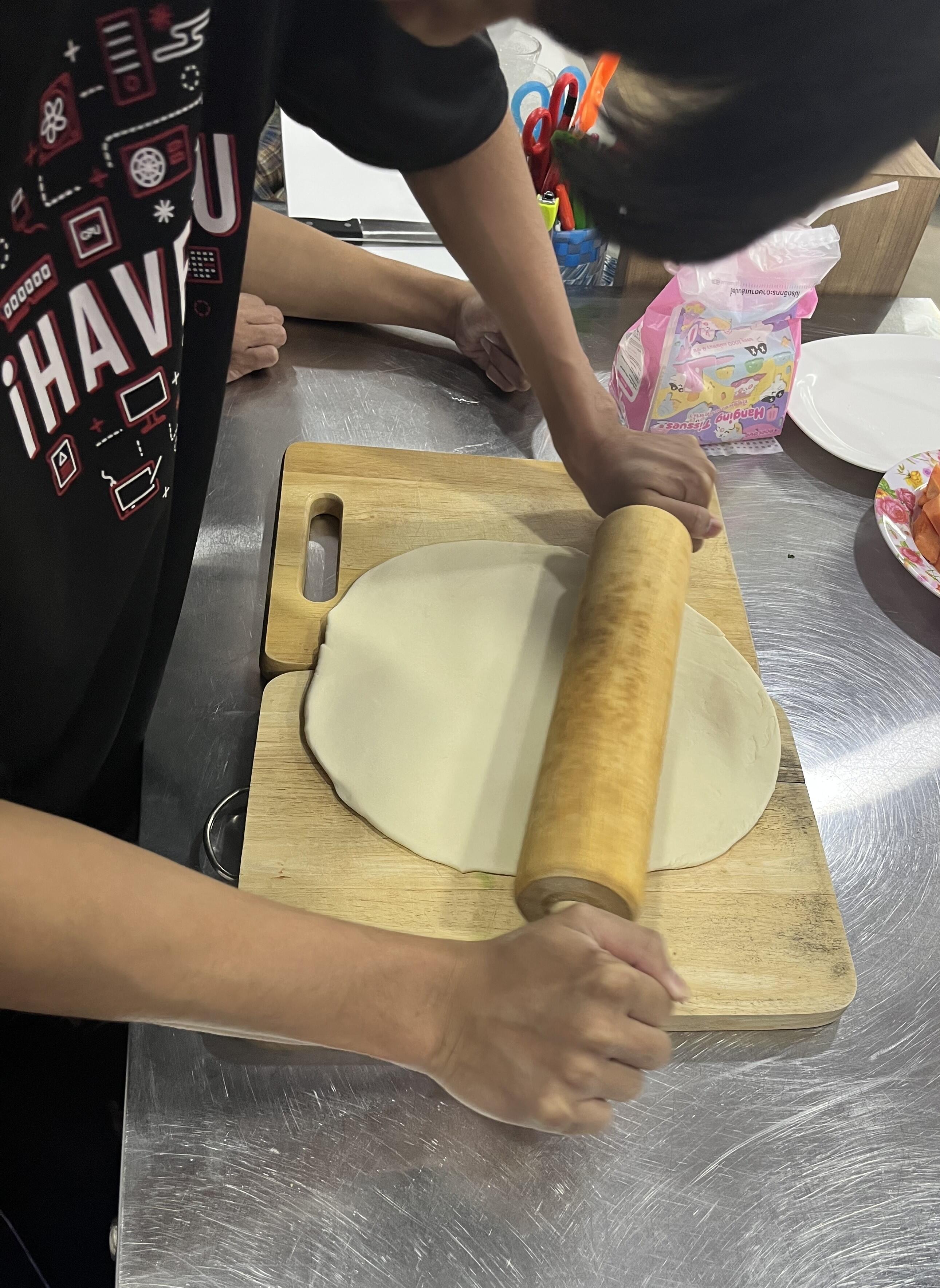 先日、一部の学生たちから「せんせい、にほんりょうり たべたいです。つくって!」とリクエストがあり、一緒に作ってみました。メニューは、「手打ちうどん」「豚の生姜焼き」「あずきと白玉団子」材料は、スーパーで買うことができましたが、日本の調味料を知らない学生たちは興味津々で、「これはなに?」「何で作られてる?」「味は?」といって、ラベルを見たり、試食したり、、、一番いいリアクションは“みりん”でした。