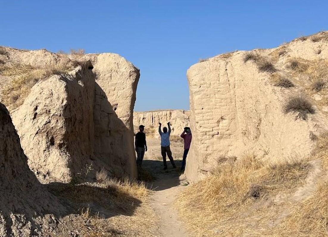 そのカフィル・カラ遺跡では、大阪府の吹田市にある国立民族学博物館から毎年調査隊が派遣されており、当時の城砦の様子を知ることができる埋蔵品の発掘作業が行われています。今回は、来ウズしていた調査隊長に同行し、JICAウズベキスタン事務所の遺跡好き3名でカフィル・カラ遺跡を訪問させていただきました!
