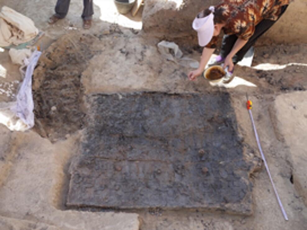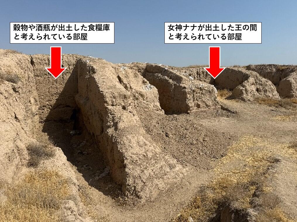上の写真は女神ナナの木彫り板が見つかった場所で、シタデルの中心にある王の間と考えられている部屋です。調査隊長によれば、王様の部屋としてはこじんまりしすぎており、またそのシタデルの周りに回廊が存在していた跡がみられることも鑑みると、実は城塞と思われていた建物全体が、ソグド人の寺院であった可能性も浮上しているそうで、引き続き、当時の正確な様子を知るための発掘調査を続けられるとのことです。