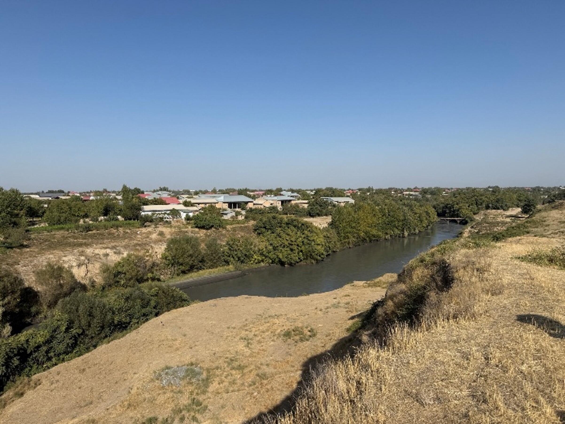遺跡はサマルカンドの貴重な水資源であるダルゴン川(21世紀の水戦争の舞台のひとつであるザラフシャン川から分かれサマルカンド地方に流れる派川)に隣接しており、まるでお堀に守られた天守閣のような構造になっています。