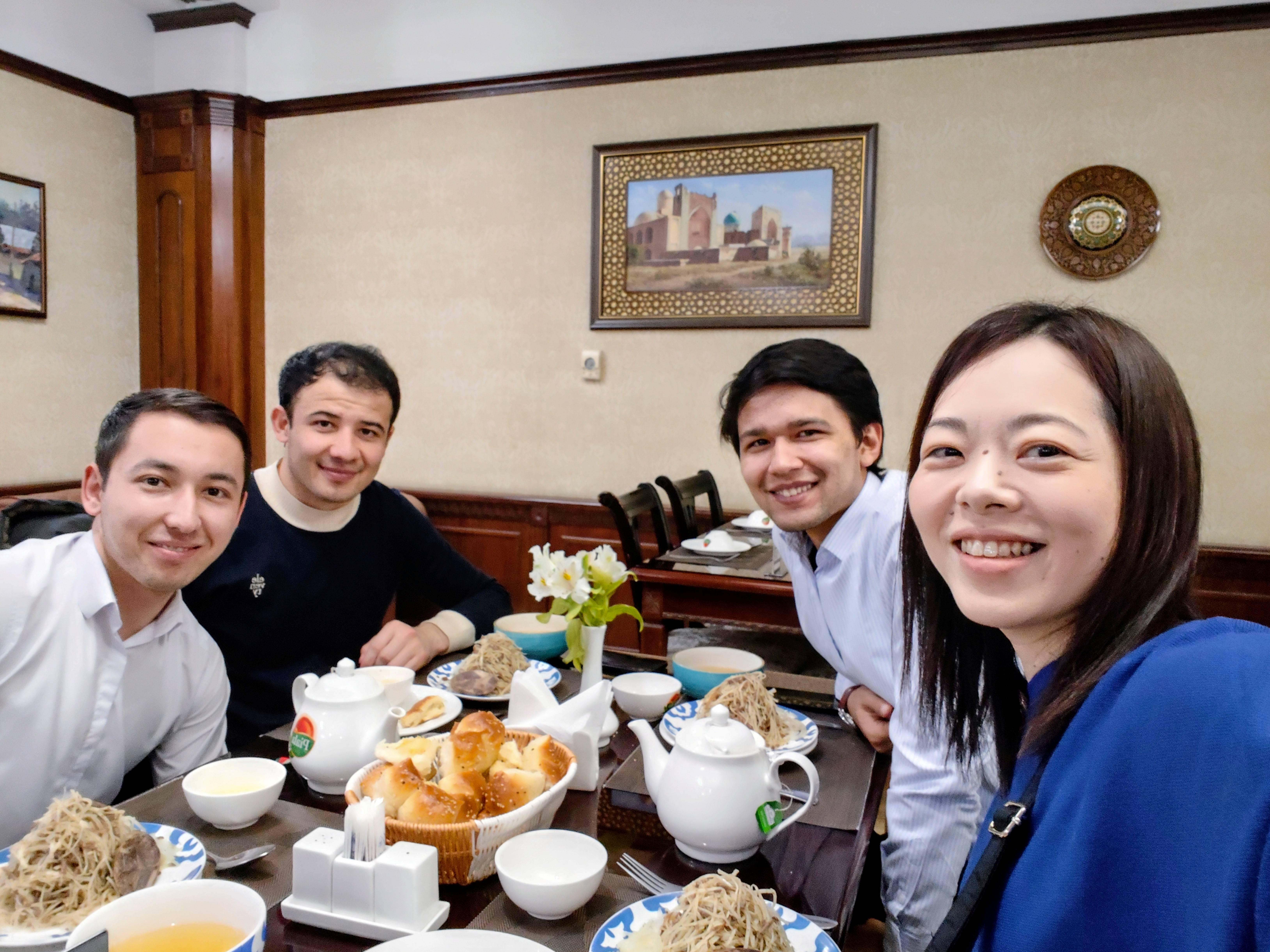 ウズベキスタンにはお茶文化があり、食事の際にも温かい紅茶や緑茶をよく飲みます。これから時間を見つけて、カフェ巡りも楽しみたいと思います。