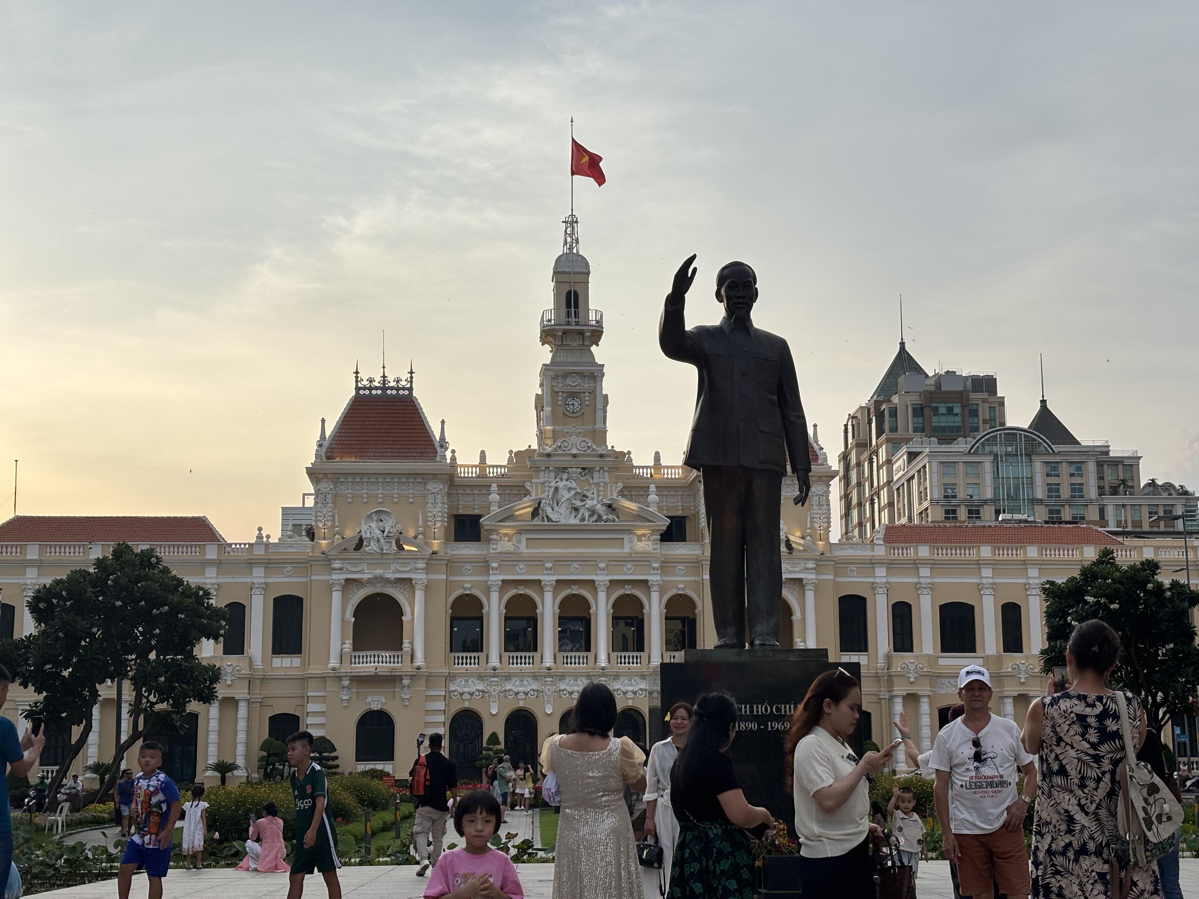 (写真:ホーチミン市人民委員会庁舎の前にあるホー・チ・ミン(Bác Hồ)像)